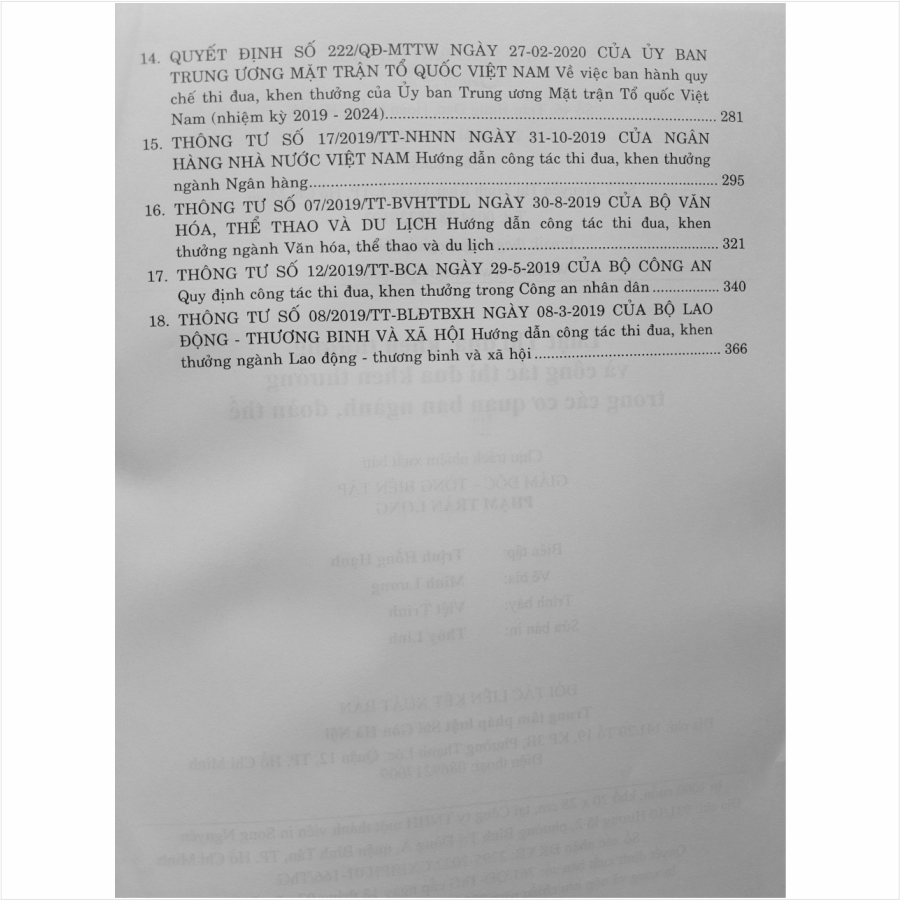 Nhà sách Nam Việt – Namvietbook xin trân trọng giới thiệu sách LUẬT THI ĐUA, KHEN THƯỞNG VÀ CÔNG TÁC THI ĐUA KHEN THƯỞNG TRONG CÁC CƠ QUAN BAN NGÀNH, ĐOÀN THỂ Sách LUẬT THI ĐUA, KHEN THƯỞNG VÀ CÔNG TÁC THI ĐUA KHEN THƯỞNG TRONG CÁC CƠ QUAN BAN NGÀNH, ĐOÀN THỂ