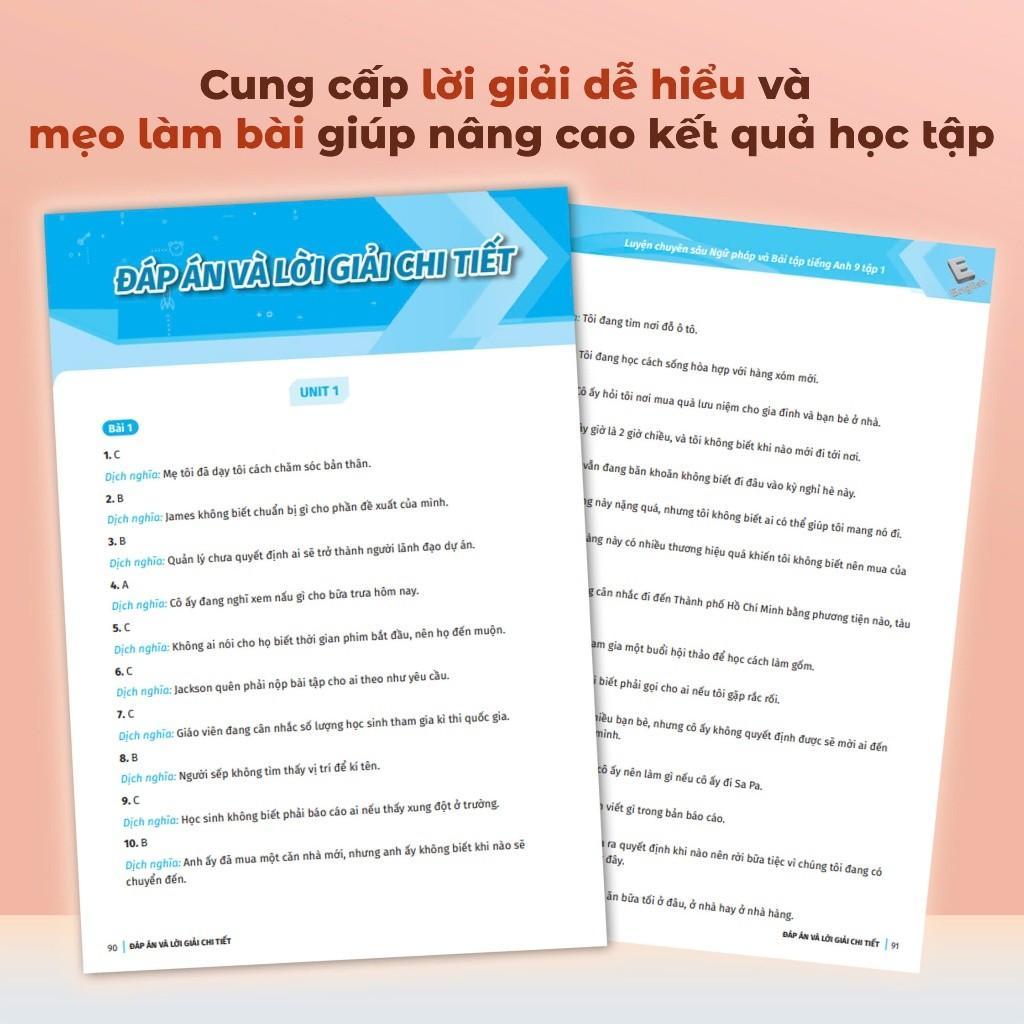 Nội dung bám sát khung chương trình giáo dục phổ thông mới Lớp 9 của Bộ Giáo dục và Đào tạo giúp các em nắm vững kiến thức đã học trên lớp cũng như ôn luyện thêm các bài tập nâng cao, hỗ trợ quá trình tự học tiếng Anh hiệu quả.