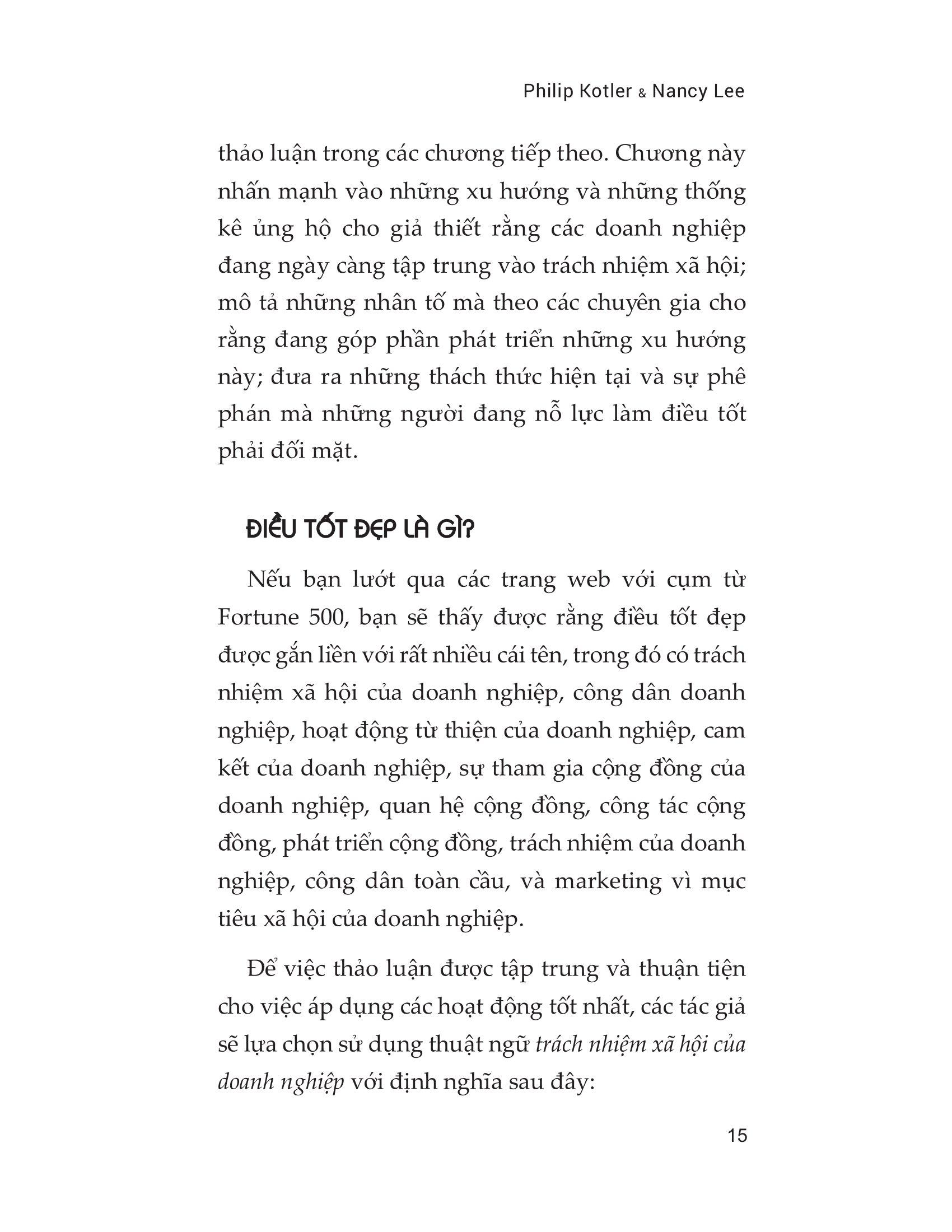 Thạc sỹ Quản trị kinh doanh Nancy R. Lee là Chủ tịch của công ty Social Marketing Services, Inc., ở Seattle, Washington, đồng thời là thỉnh giảng viên (cộng tác giảng dạy) môn Tiếp thị xã hội tại Đại học Washington.
