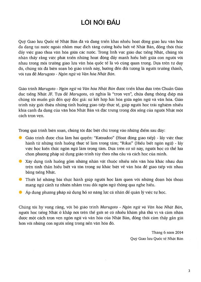 Giáo trình giới thiệu những tình huống giao tiếp thực tế, giúp người học trải nghiệm nhiều khía cạnh đa dạng của văn hóa Nhật Bản và đặc trưng trong đời sống của người Nhật một cách trọn vẹn.