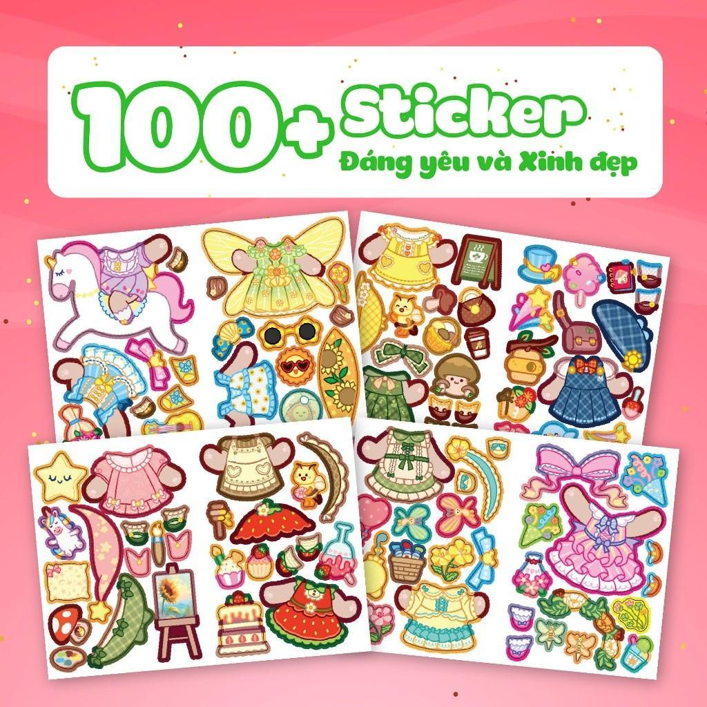 - Với hơn 90 Stickers gồm trang phục, phụ kiện cùng những bối cảnh lung linh rực rỡ giúp ích cho con rất nhiều về tư duy đối với các màu sắc, giúp các con trở thành nhà thiết kế thời trang, có thể thỏa sức sáng tạo bằng sự hiểu biết và nhận thức riêng của mình.