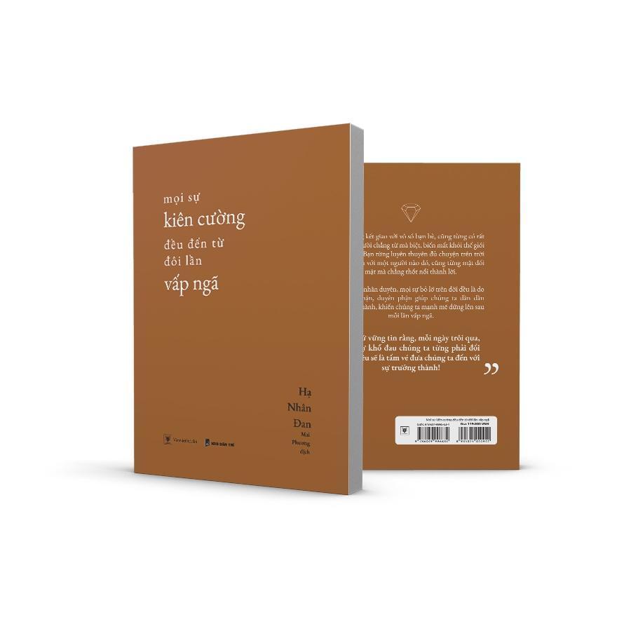Thấu hiểu được sự kiên cường và cuộc hành trình mà tất cả chúng ta đều sẽ phải trải qua, tác giả trẻ Hạ Nhân Đan đã vun vén những câu chữ dịu dàng, gom nhặt lại thành một cuốn sách đắt giá mang tên: “Mọi sự kiên cường đều đến từ đôi lần vấp ngã”. Đây sẽ là cuốn sách bật mí cho chúng ta đôi điều trong cuộc sống thực tế đầy khó khăn, nhưng cũng sẽ bước đi cùng ta trên chặng đường dài phía trước. Ở đó chắc chắn sẽ có cả gặp gỡ và chia ly, có người vẫn phải rời đi dù ta chẳng nỡ tạm biệt họ, có người phải rời xa rồi ta mới tiếc nuối hay có cả những mối duyên chỉ mong họ sớm rời đi, nhưng tất cả những tổn thương, những vấp ngã mà chúng ta đã hoặc đang trải qua chắc chắn sẽ được chữa lành và an ủi từ người bạn mang tên “Mọi sự kiên cường đều đến từ đôi lần vấp ngã”.