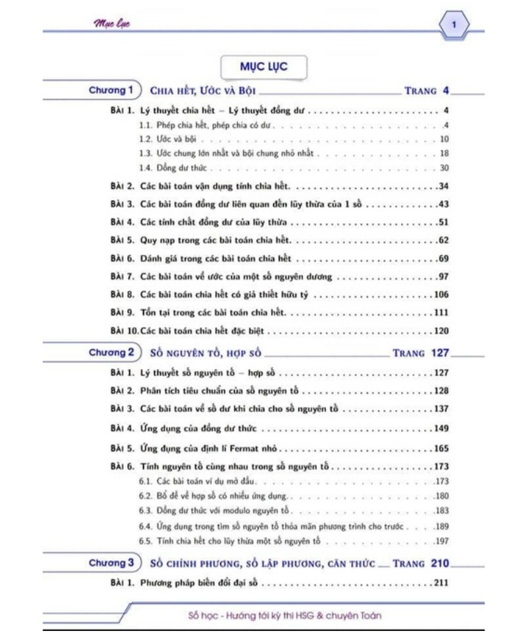 Sách - Một Số Chủ Đề Số Học Hướng Tới Kỳ Thi HSG và Chuyên Toán Nội dung sách Chương 1 Chia hết, Ước và bộ Chương 2 Số nguyên Tố, hợp số Chương 3