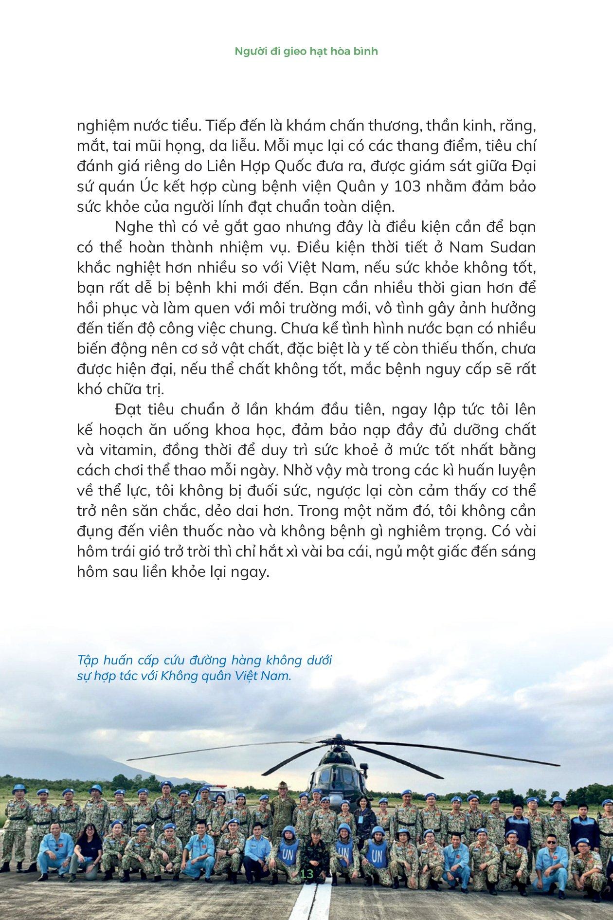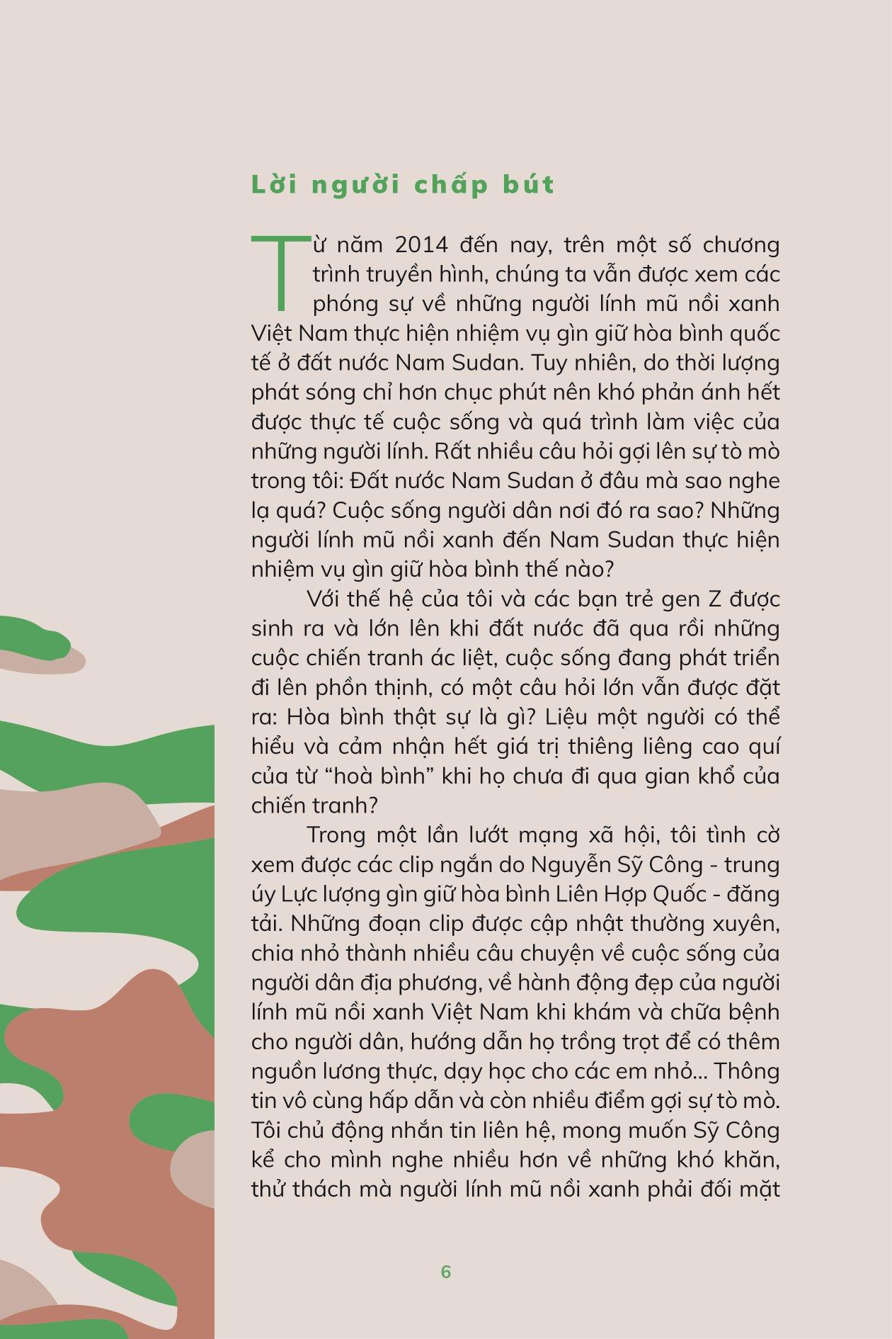 Mua tại TiktokMũ Nồi Xanh Việt Nam - Người Đi Gieo Hạt Hòa Bình Hình ảnh người lính mũ nồi xanh Việt Nam thực hiện nhiệm vụ quốc tế trở nên quen thuộc trong những năm qua. Thế nhưng vẫn còn đó nhiều câu hỏi: Đất nước những người lính đến làm nhiệm vụ ở nơi đâu, sao tên nghe lạ quá? Cuộc sống người dân nơi đó ra sao? Những người lính thực hiện nhiệm vụ gìn giữ hoà bình như thế nào? Mũ nồi xanh Việt Nam - Người đi gieo hạt hòa bình là hành trình của một người trong cuộc. Cùng với người lính trẻ Nguyễn Sỹ Công, bạn chuẩn bị hành trang lên đường đến đất nước Nam Sudan, thực hiện nhiệm vụ của một người lính gìn giữ hòa bình Liên Hợp Quốc. Và chính ở nơi đây, bạn khám phá những điều tuyệt vời nhất khi con người gắn bó với nhau bằng tình yêu thương, cũng như ý nghĩa sâu sắc của từ “hòa bình”.