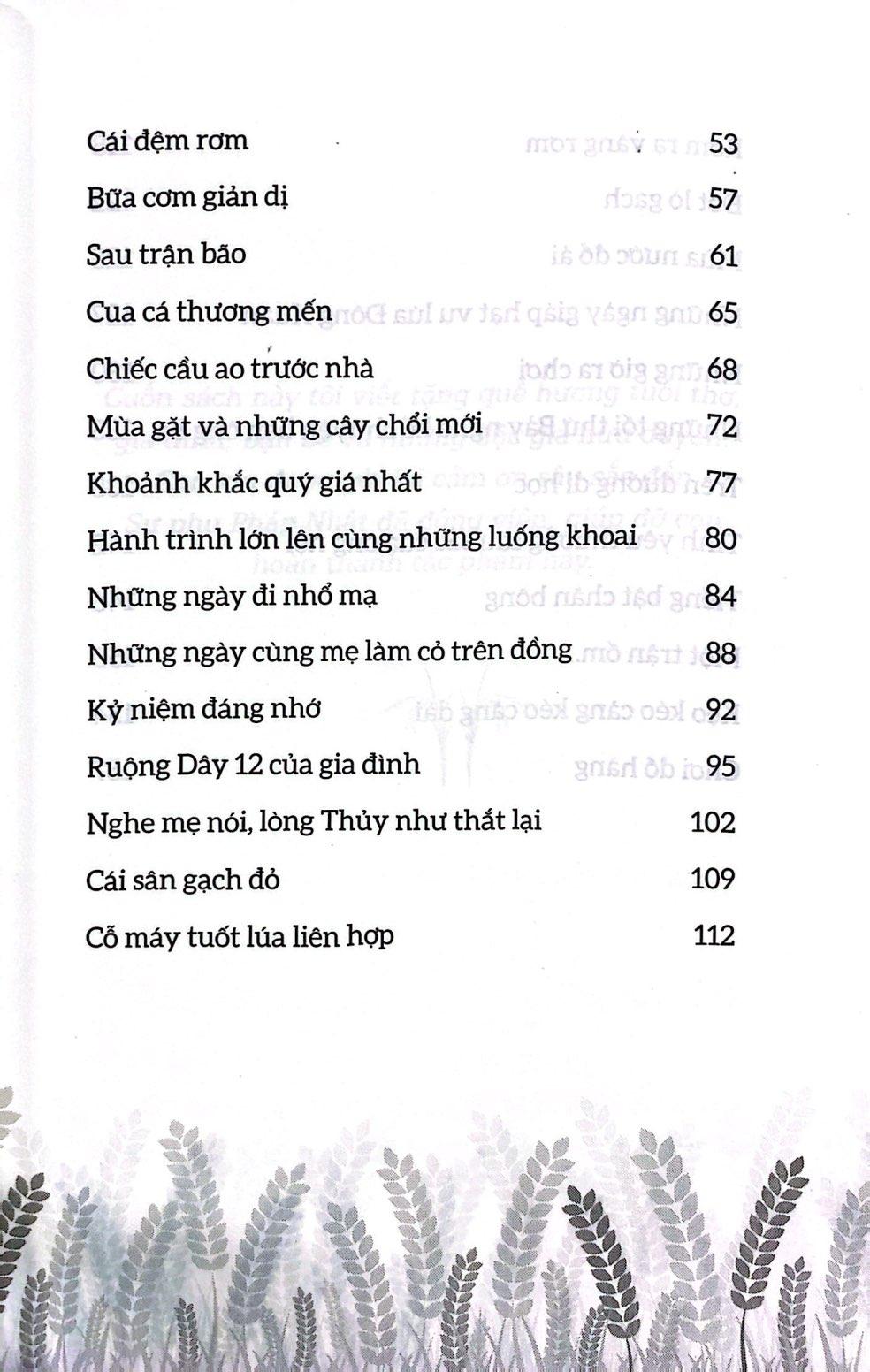 Giữa nhịp sống vội vã, bạn có bao giờ mơ về những chiều hè lộng gió, những cánh đồng lúa xanh mướt trải dài vô tận? Mùa lúa trổ đòng đòng sẽ mở ra cánh cửa dẫn bạn trở về miền ký ức trong trẻo, nơi tuổi thơ êm đềm trôi qua bên những người thân yêu. Qua lời kể của tác giả, tuổi thơ của cô bé Thủy hiện lên sống động qua những sinh hoạt đời thường gắn liền với cánh đồng lúa xanh mướt và những người nông dân chân chất.