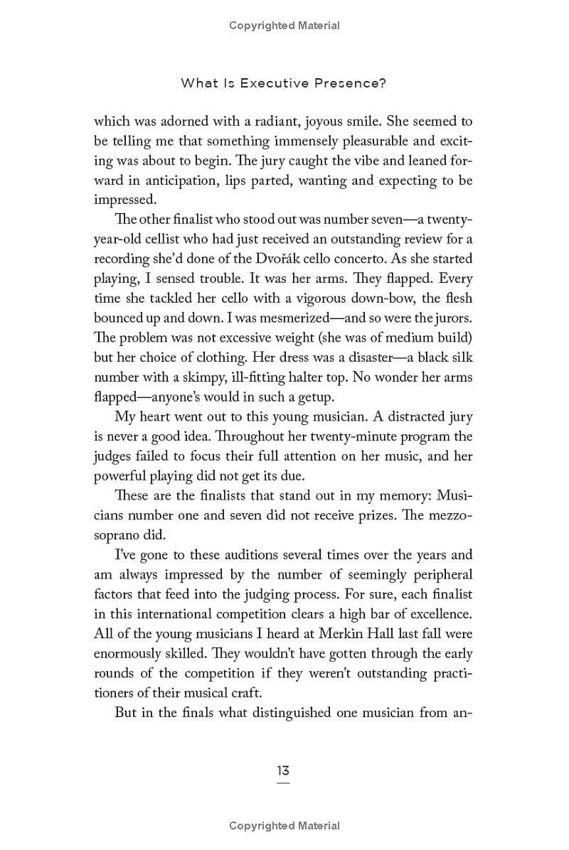 Hewlett’s most potent message, ten years ago and now, is that EP is eminently learnable. You don’t need to have the voice of James Earl Jones, the communication skills of Steve Jobs, or the athleticism of Michelle Obama to ace EP. You merely have to arm yourself with the tools and tactics contained in these pages.