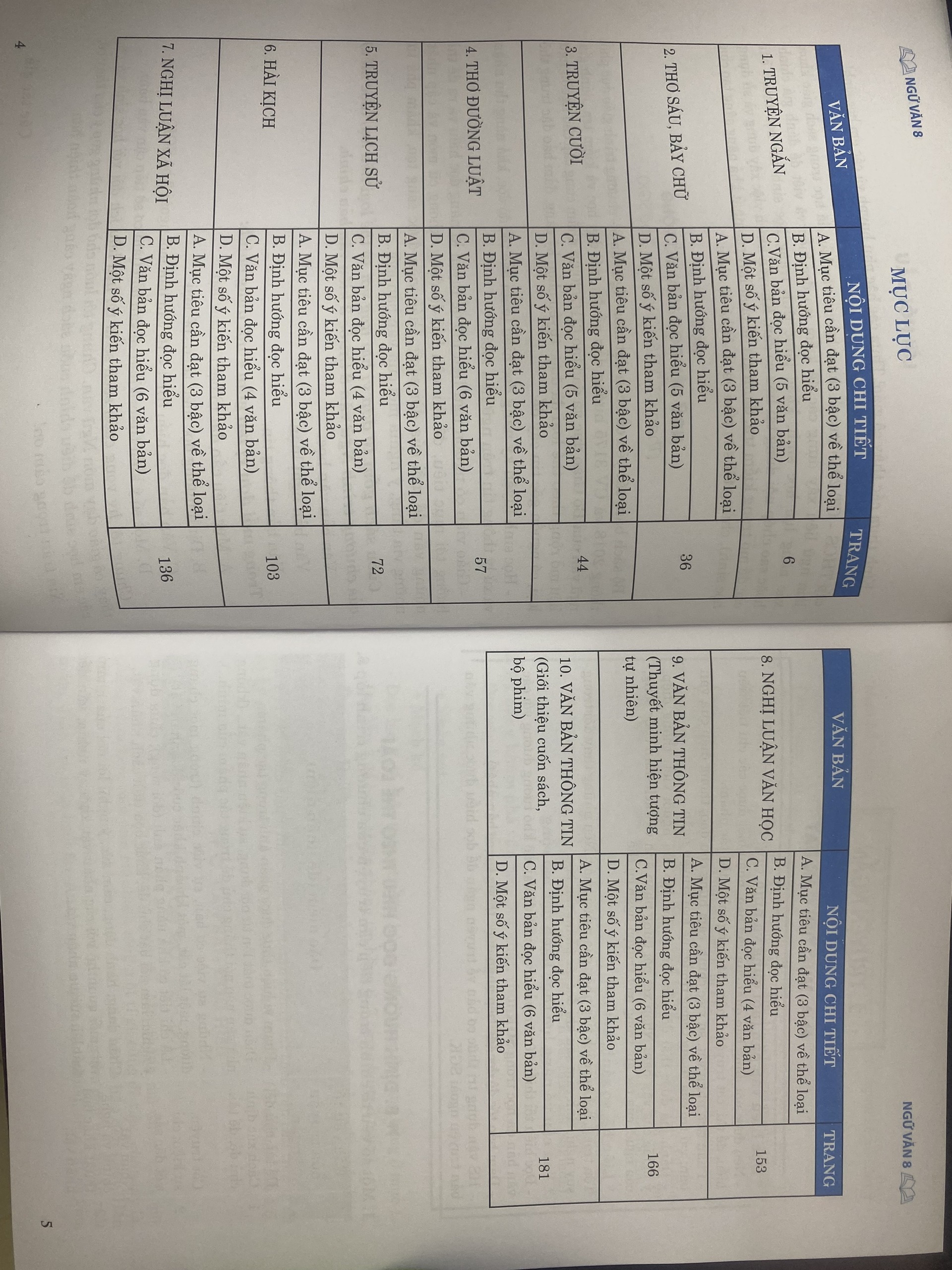 Cuốn sách gồm 10 đơn vị bài ứng với 10 thể loại/tiểu loại (đọc hiểu) của chương trình Ngữ văn 8 thuộc 3 kiểu văn bản chính.