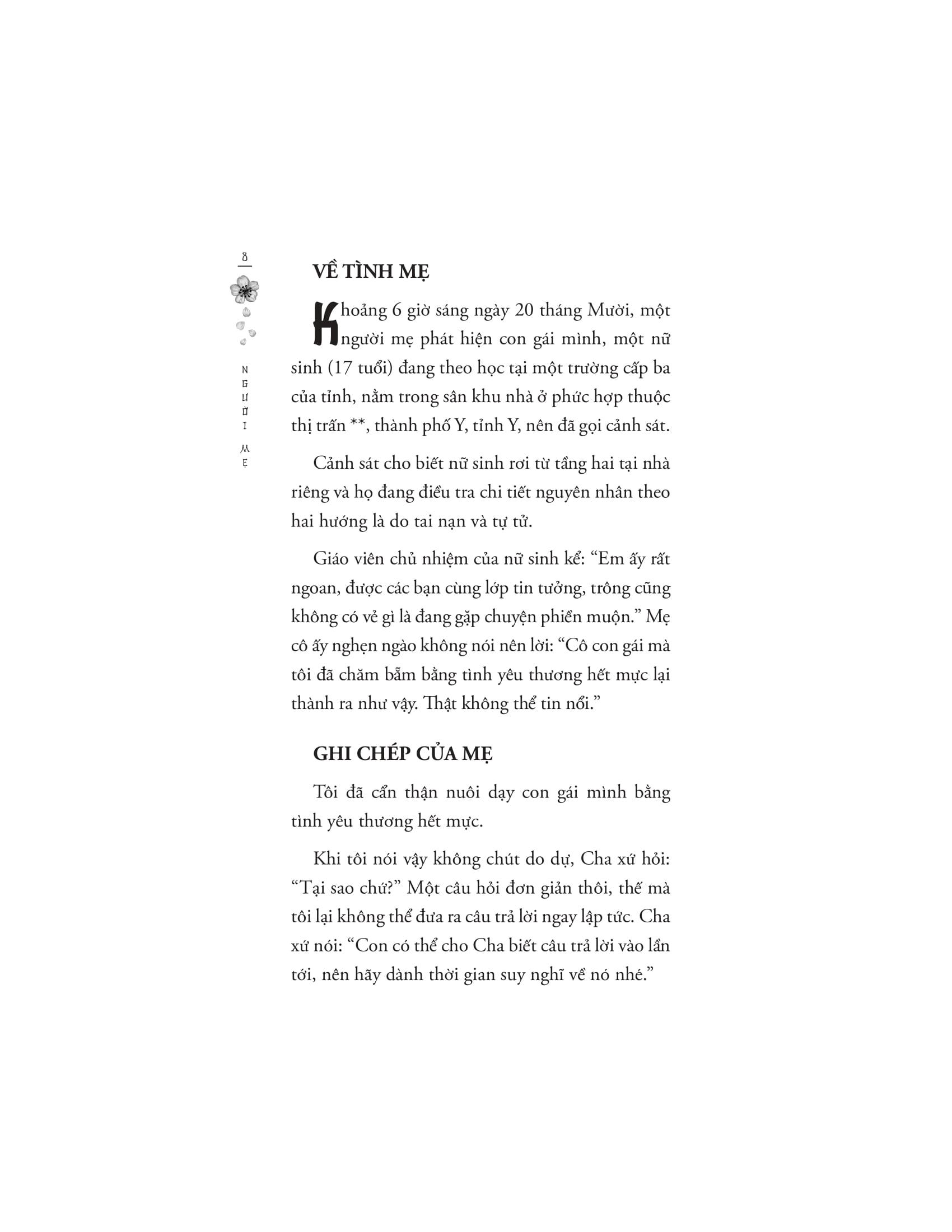 Với những chi tiết bất ngờ và đầy cảm động, Minato Kanae đã vẽ nên một cuộc hành trình của hy sinh và ẩn ức - một câu chuyện ý nghĩa về tình mẫu tử vô điều kiện.