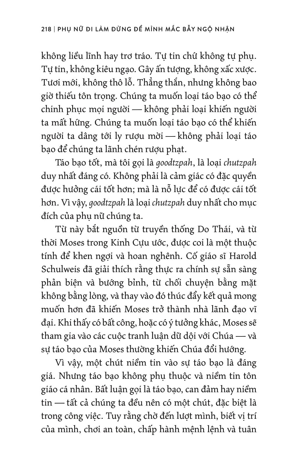 Và không chỉ cho thấy 15 quan niệm đó dẫn dắt phụ nữ đến đâu, tác giả — phó chủ tịch NBCUniversal (một trong những phụ nữ quyền lực của điện ảnh-truyền hình-truyền thông) — đề ra 15 quan điểm đối trọng súc tích, dễ dàng triển khai thành sách lược “phá bẫy ngộ nhận” để tiến lên.