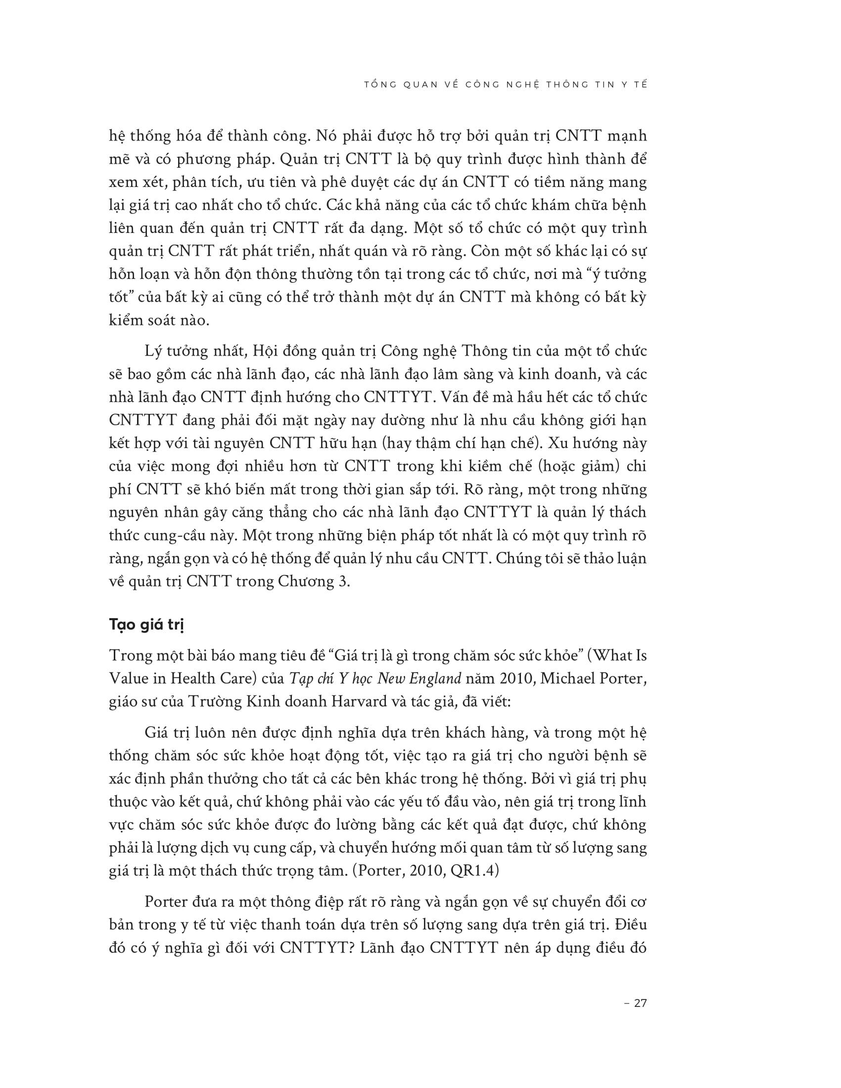 Quản Lý Công Nghệ Thông Tin Trong Y Tế - Chiến Lược, Tầm Nhìn Và Kỹ Năng Trong bối cảnh y tế ngày càng số hóa, công nghệ thông tin y tế (CNTTYT) giữ vai trò trung tâm của hệ thống vận hành. Cuốn sách này là một cẩm nang thực hành cho lãnh đạo CNTT trong ngành y, tập trung không chỉ vào công nghệ mà còn vào kỹ năng lãnh đạo, quản trị và định hướng chiến lược. Tác phẩm bao quát từ nền tảng (chiến lược, quản trị CNTT, tạo giá trị, tiếp thị CNTT y tế) đến các chủ đề nâng cao (quản lý rủi ro, lãnh đạo, Lean IT, đổi mới, y tế số). Đây không chỉ là lý thuyết mà còn cung cấp các khung thực hành, công cụ, kỹ thuật, và case study thực tế để giúp nhà quản lý y tế và CNTT: