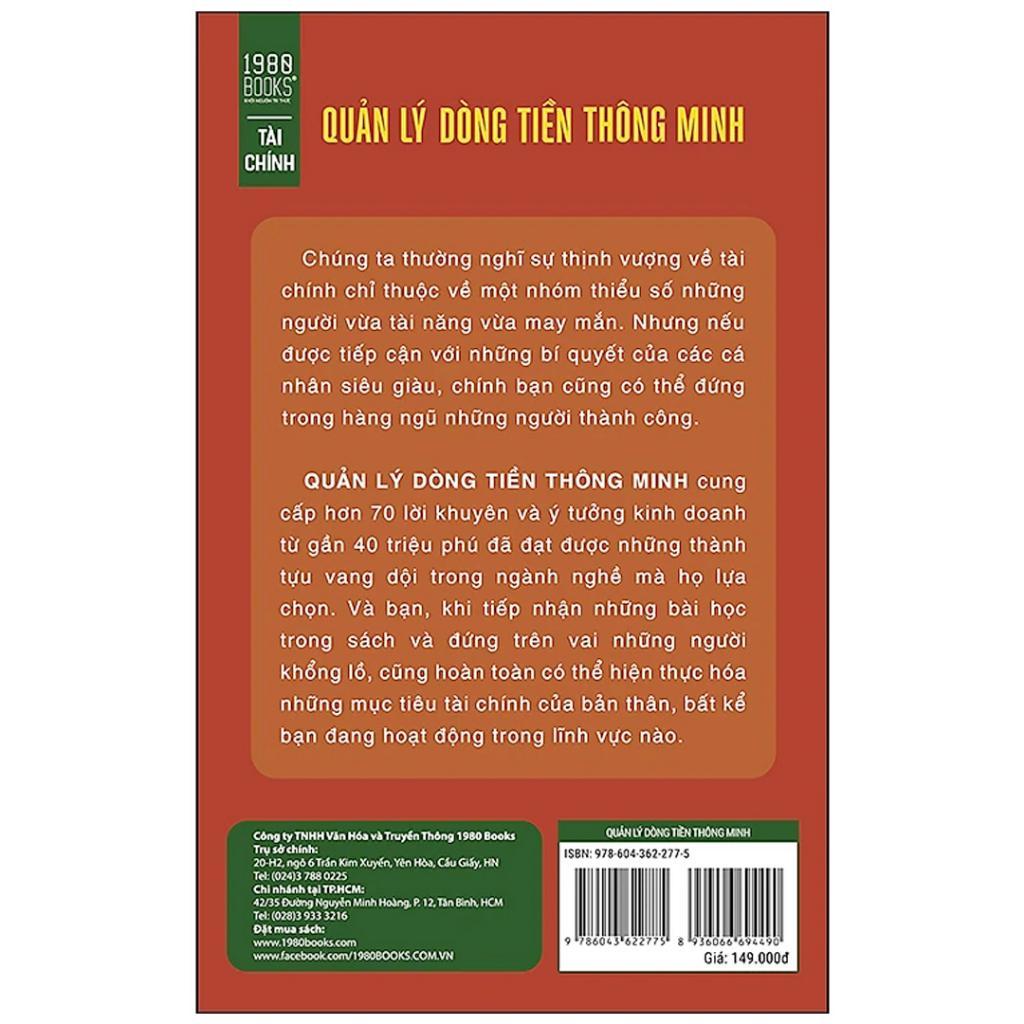 Sách - Quản Lý Dòng Tiền Thông Minh Chúng ta thường nghĩ sự thịnh vượng về tài chính chỉ thuộc về một nhóm thiểu số những người vừa tài năng vừa may mắn. Nhưng nếu được tiếp cận với những bí quyết của các cá nhân siêu giàu, chính bạn cũng có thể đứng trong hàng ngũ những người thành công. “Quản lý dòng tiền thông minh” cung cấp hơn 70 lời khuyên và ý tưởng kinh doanh từ gần 40 triệu phú đã đạt được những thành tựu vang dội trong ngành nghề mà họ lựa chọn. Và bạn, khi tiếp nhận những bài học trong sách và đứng trên vai những người khổng lồ, cũng hoàn toàn có thể hiện thực hóa những mục tiêu tài chính của bản thân, bất kể bạn đang hoạt động trong lĩnh vực nào. Cuốn sách tập hợp những chiến lược tư duy cũng như các hành động cụ thể mà những cá nhân xuất chúng sử dụng để tạo dựng nên khối tài sản khổng lồ, đồng thời duy trì một cách khôn ngoan để gia tài của họ không ngừng mở rộng theo thời gian. Tiến sĩ Greg Reid đã bay vòng quanh thế giới để gặp mặt trực tiếp những cá nhân siêu giàu, lắng nghe câu chuyện của họ và tập hợp lại những bài học đắt giá nhất trong sách, giúp độc giả tiếp cận với những bí mật chưa từng được tiết lộ ở bất kỳ nơi nào khác. Bạn sẽ không chỉ biết người thuộc giới siêu giàu đã làm những việc gì, mà còn thấu hiểu cả lối tư duy họ đã áp dụng khi thực hiện những việc đó. Các tác giả chắt lọc những câu chuyện thành các bước hành động dễ hiểu, để người đọc có thể nhanh chóng đưa vào sử dụng trong các tình huống thực tế của bản thân. Mỗi một trang sách đều là những lời khuyên cô đọng và thúc đẩy độc giả hành động, cùng với những trích dẫn đầy cảm hứng đến từ những cá nhân đã trở thành huyền thoại. Hãy coi “Quản lý dòng tiền thông minh” là kim chỉ nam giúp bạn chinh phục hành trình vươn tới sự dồi dào vĩnh cửu, với những hướng dẫn đến từ chính những con người đã làm nên kỳ tích đó.