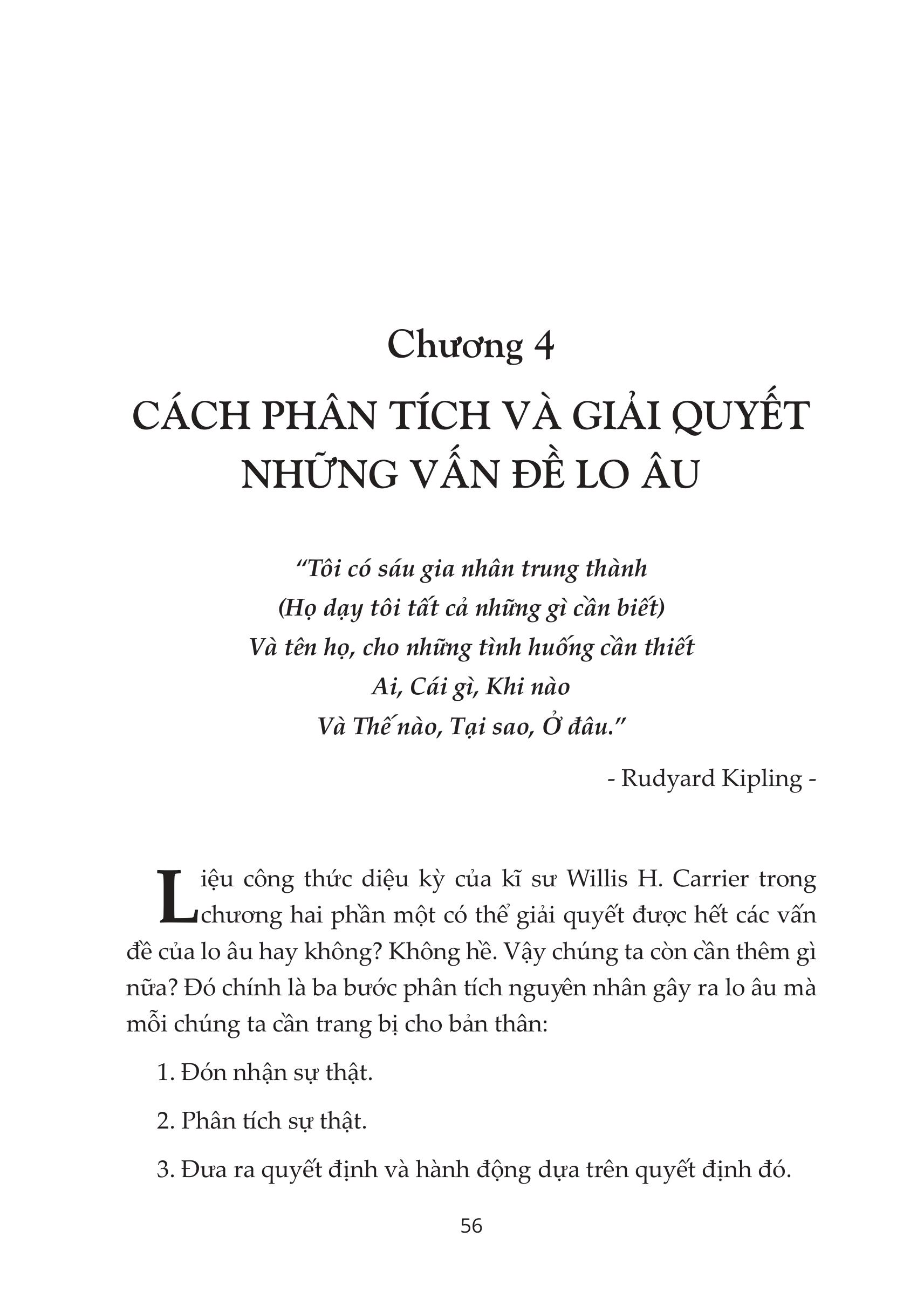 - Số trang: 260 GIỚI THIỆU SÁCH Sau Đắc Nhân Tâm thì Quẳng gánh lo đi và vi sống (How to Stop Worrying and start living) là một trong những cuốn sách bán chạy nhất trên thế giới. Bất kỳ ai đang sống đều sẽ có những lo lắng thường trực về học hành, công việc, những hoá đơn, chuyện nhà cửa,... Cuộc sống không dễ dàng giải thoát bạn khỏi căng thẳng, ngược lại, nếu quá lo lắng, bạn có thể mắc bệnh trầm cảm. Quẳng Gánh Lo Đi Và Vui Sống khuyên bạn hãy khóa chặt dĩ vãng và tương lai lại để sống trong cái phòng kín mít của ngày hôm nay. Mọi vấn đề đều có thể được giải quyết, chỉ cần bạn bình tĩnh và xác định đúng hành động cần làm vào đúng thời điểm. Cuốn sách được viết ra bởi người tự nhận mình là "một trong những kẻ bất hạnh nhất New York " nhưng chỉ sau một thời gian ngắn bằng những nỗ lực vượt bậc của mình, ông đã trở thành 1 người xuất trúng được hàng triệu người biết đến. Cuốn sách là tập hợp các quy tắc giúp bạn giải quyết những cảm xúc tiêu cực, lo lắng và buồn bã. Không chỉ đưa được người đọc đến một cuộc sống thú vị và trọn vẹn hơn mà còn giúp chúng ta nhận thức rõ về bản thân và cả những người xung quanh SƠ LƯỢC VỀ NỘI DUNG Cuốn sách bao gồm 10 phần khác nhau, với rất nhiều những kinh nghiệm và các lời khuyên từ tác giả cũng như những người đi trước, giúp bạn có thể nhận thức được những điều đúng đắn nhất. Chi tiết