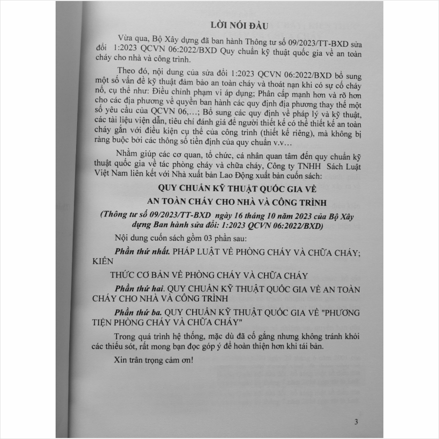 ✨Sách Quy Chuẩn Kỹ Thuật Quốc Gia về An Toàn Cháy Cho Nhà và Công Trình (Thông tư số 09/2023/TT-BXD ngày 16 tháng 10 năm 2023 của Bộ Xây dựng Ban hành sửa đổi: 1:2023 QCVN 06:2022/BXD) - V2286T