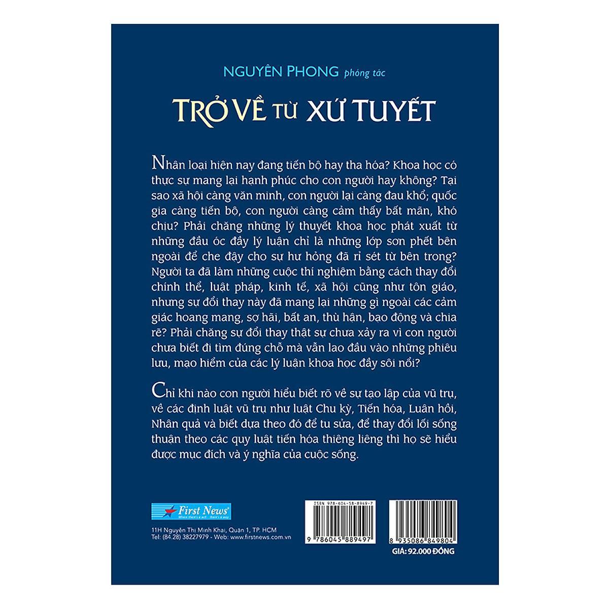 Trở về từ xứ tuyết là cuốn sách tiếp theo trong bộ sách về văn hóa, tâm linh của dịch giả Nguyên Phong được xuất bản. Sau cuốn sách về cuộc hành trình “Đường mây qua xứ tuyết” các ngài đã được biết Tây Tạng là một xứ nằm ở vị trí hiểm trở, biệt lập với thế giới bên ngoài, nhờ thế nó duy trì được một nền văn minh cổ khác với những nền văn minh mà chúng ta được biết đến. Không một ai đặt chân vào Tây Tạng mà không chịu ảnh hưởng của nó, và không ai có thể chui rúc vào đời sống chật hẹp khi đã nhìn thấy sự bao la hùng vĩ của rặng Tuyết Sơn.