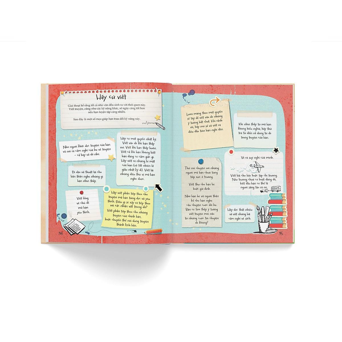 Trong phần thứ hai, có rất nhiều mẹo giúp bạn nghĩ dàn ý truyện và phát triển kĩ năng viết của bạn. Bạn sẽ bắt gặp nhiều gợi ý thú vị và hữu ích như: đặt tên hay cho truyện, mở đầu và kết thúc như thế nào cho hấp dẫn, cách dùng từ, luyện viết câu… Danh sách những điều gợi ý nên làm để viết tốt hơn ắt hẳn sẽ giúp bạn thêm nhiều cảm hứng khi bắt tay viết câu chuyện của mình. Ngoài ra, phần này cũng có những chỗ trống để bạn viết ra những từ vựng giúp khơi dậy sự tưởng tượng và ý tưởng cho các câu chuyện tiếp theo.