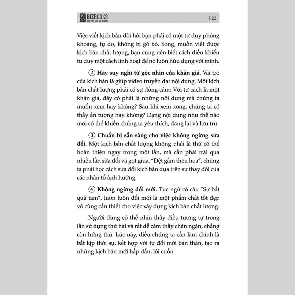 Bí quyết nằm trong cuốn sách “Short videos: Kịch bản hay, triệu views tới tay”. Cuốn sách hướng dẫn từ A đến Z cách để có một video ngắn bùng nổ, triệu view và có độ chuyển đổi cao. Dựa trên những ví dụ thực tế trên các nền tảng và nghiên cứu của tác giả, cuốn sách cho bạn thấy được những yếu tố cần thiết trong việc xây dựng video, và cụ thể cách triển khai.
