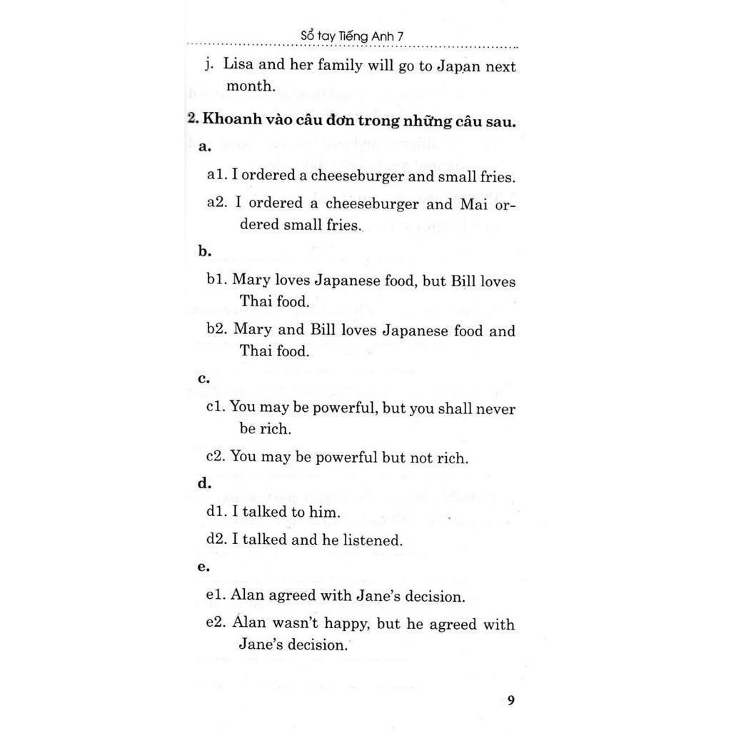 Sách hệ thống hóa tất cả các kiến thức ngữ pháp tiếng Anh lớp 7 theo các chủ đề mà các em được học trong chương trình ở trường; từ cách sử dụng mạo từ, cách dùng some, a lot of, và lots of để miêu tả số lượng không xác định, cách dùng các giới từ at, in, on để chỉ thời gian và nơi chốn, cho đến cách dùng các thì, cách thành lập câu đơn, cách đặt câu hỏi Yes/No, và cách đặt câu hỏi với How much và How many. Tất cả được trình bày rõ ràng, súc tích kèm ví dụ minh họa.