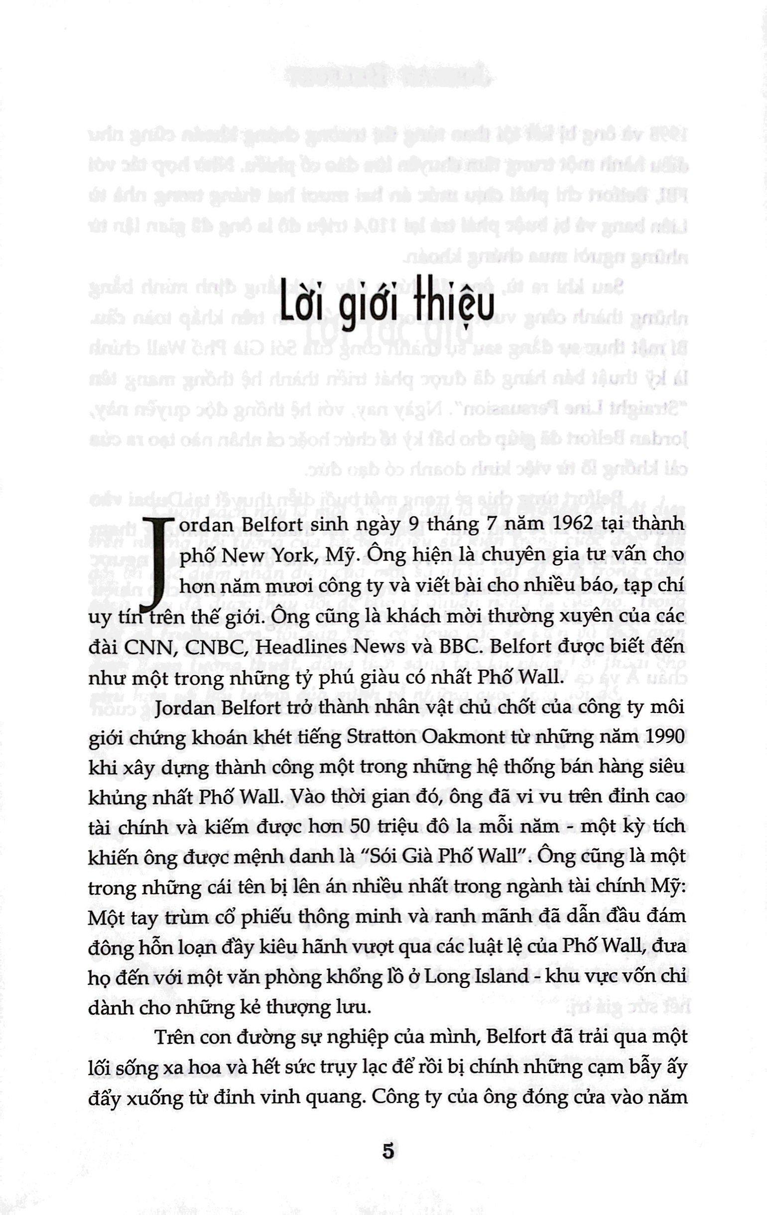 Jordan Belfort là chuyên gia tư vấn cho hơn 50 công ty và viết bài cho nhiều báo, tạp chí uy tín trên thế giới, trong đó có The New York Times, The Wall Street Journal, The Los Angeles Times, The London Times, The Herald Tribune, Le Monde, Corriere della Serra, Forbes, Business Week, Paris Match, Rolling Stone.