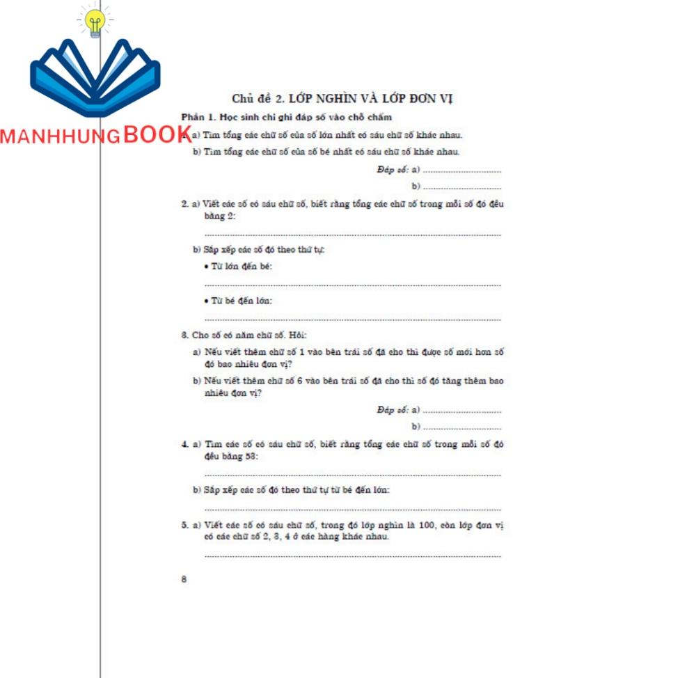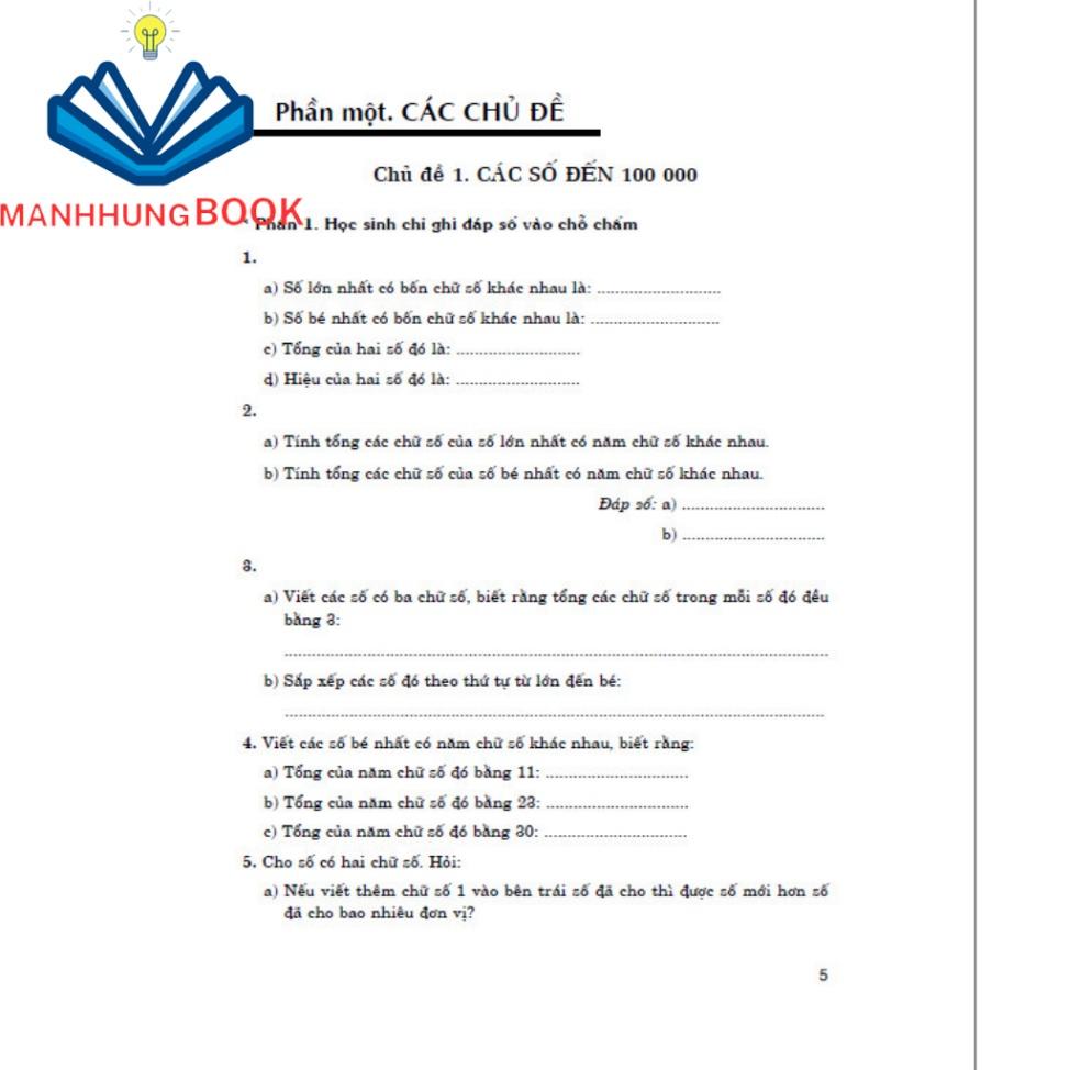 Cuốn sách là một tài liệu tham khảo mở rộng theo chủ đề:các số có nhiều chữ số được viết theo hàng va lớp , các phép tính với số có nhiều chữ số , khái quát hóa, mở rộng các tính chất của phép tính, bài toán về tính số trung bình cộng, tìm hai số khi biết tổng và hiệu, bài toán về gấp một số lần và giảm một số lần, bài toán về một phần mấy của một số,...