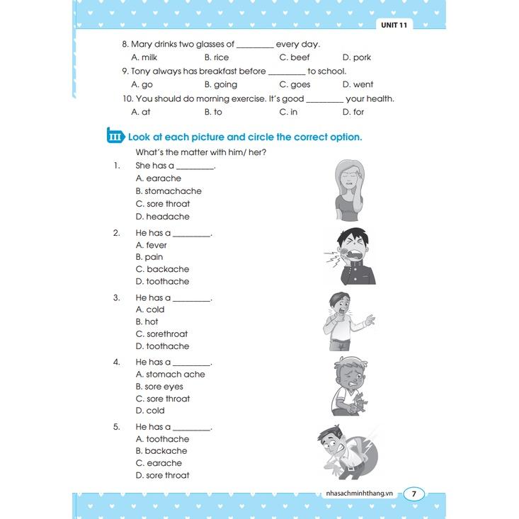 Mỗi unit có hai bài kiểm tra. Bài tập được biên soạn đa dạng, phong phú, bám sát chương trình và sách giáo khoa; trình bày khoa học, dễ hiểu.