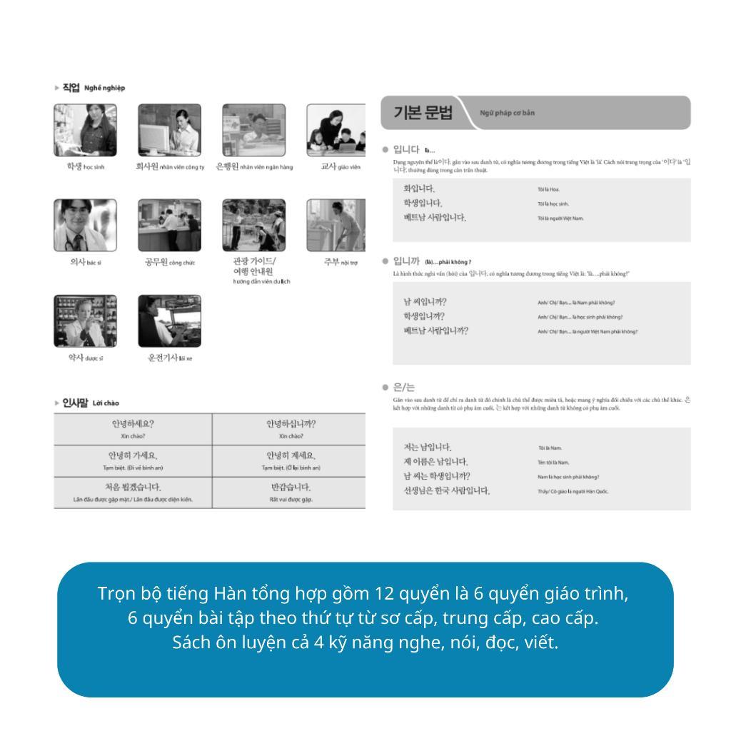 ✨Sách - Tiếng Hàn Tổng Hợp Sơ Cấp 1 + 2 Dành Cho Người Việt Nam - Đen Trắng - Combo 4 Cuốn - MCBooks