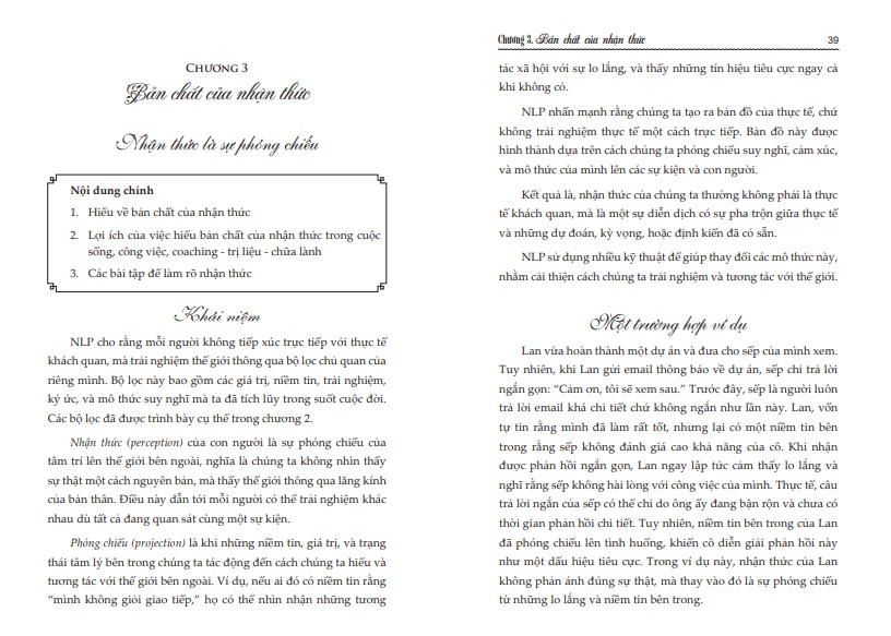 - Giải quyết mối quan hệ;… TINH HOA NLP cấp độ nhà thực hành (NLP Practitioner) được thiết kế đặc biệt để giúp bạn tiếp nhận kiến thức, kỹ năng mới không chỉ ở cấp độ ý thức, mà còn tác động đến cả tiềm thức của bạn. Với sự chuẩn hóa trong từng bộ công cụ NLP, cuốn sách đem đến cho bạn những trải nghiệm thú vị và đột phá thông qua những kỹ thuật đặc biệt của NLP. Vì thế, những công cụ này sẽ dễ dàng trở thành một phần tự nhiên trong bạn, giúp bạn ứng dụng được ngay khi đọc sách. Cuốn sách thực sự DỄ ĐỌC - DỄ HIỂU - DỄ THỰC HÀNH. TẠI SAO BẠN CẦN ĐỌC SÁCH NÀY?