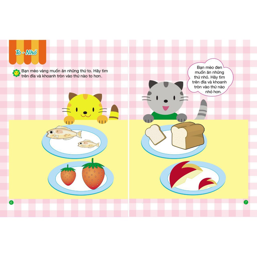 ❖ Cuốn sách giúp các bé làm quen với các khái niệm toán học ban đầu như phân biệt giống nhau – khác nhau, so sánh to – nhỏ, lớn – bé, dài – ngắn … làm quen với các con số, hình dạng, nối hình, phân loại logic …giúp trẻ rèn kĩ năng tập trung, tư duy logic và phán đoán giải quyết vấn đề linh hoạt.