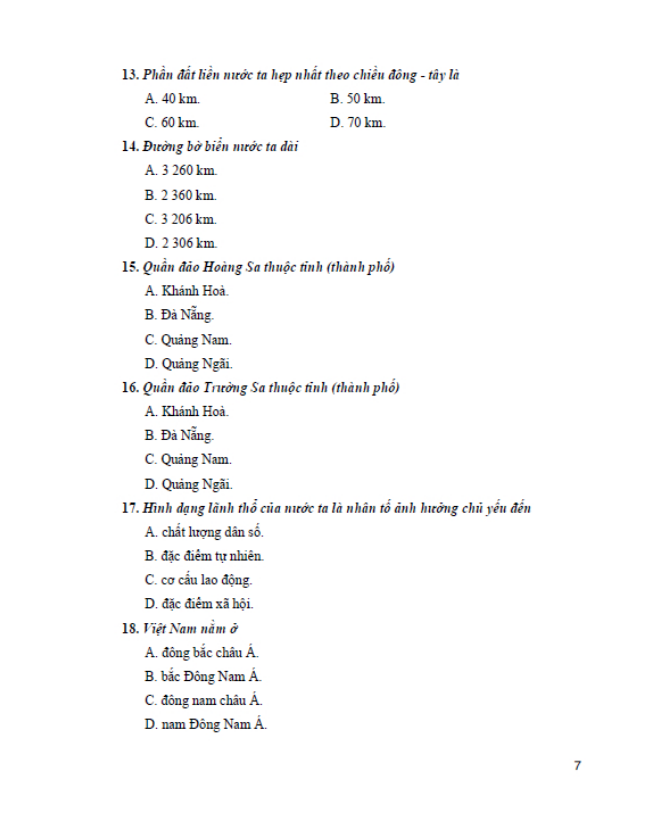 Mỗi câu hỏi trắc nghiệm đều có bốn phương án trả lời, trong đó chỉ duy nhất có một phương án đúng hoặc chính xác. Các em khoanh tròn vào chữ cái A/ B/ C/ D của phương án đó.