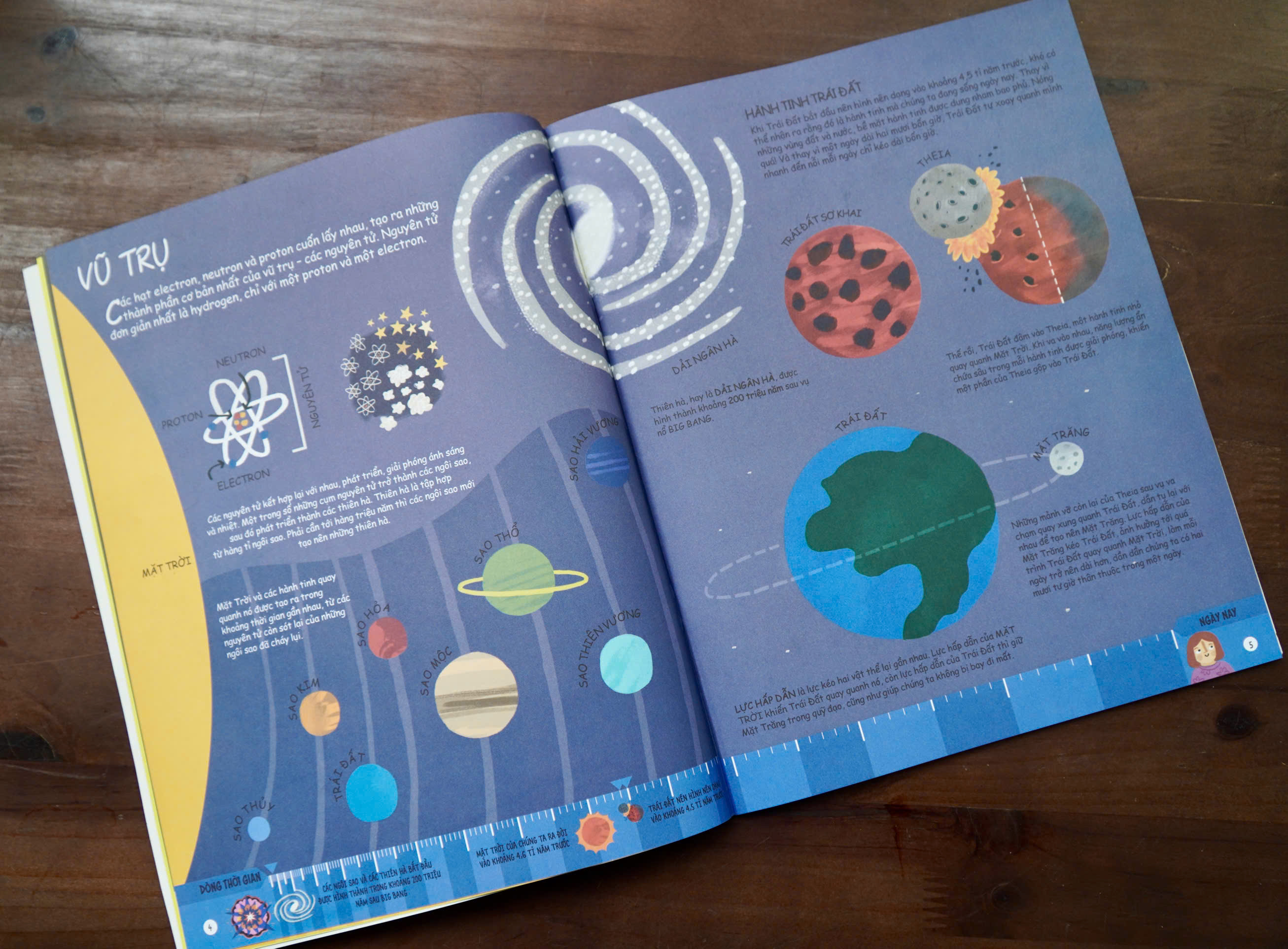 Trí tưởng tượng sẽ bung tỏa qua rất nhiều minh họa sinh động, và hoàn toàn có thể mang tới cả âm thanh, hương sắc. Các bạn dần dần làm quen với không gian - thời gian tồn tại trước cả loài người: