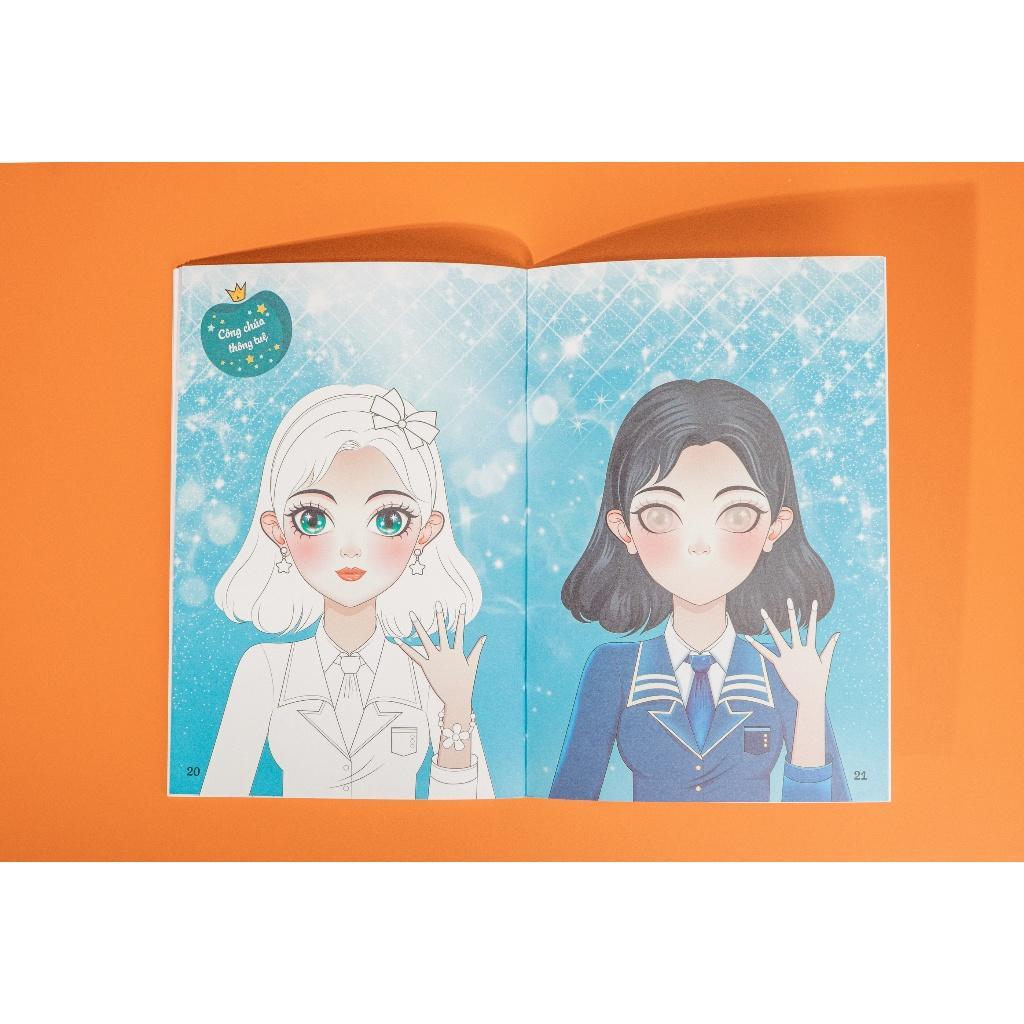 Mỗi cuốn sách là một hành trình cho bé tự tay tô màu, phối trang phục, trang điểm khuôn mặt, và dán sticker phụ kiện để tạo nên phong cách riêng cho nàng công chúa của mình!