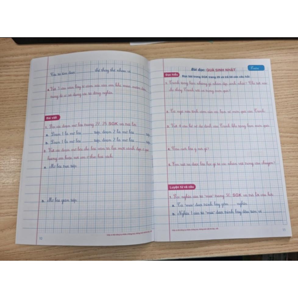 tVới 2 bài học, mỗi tuần gồm các câu hỏi và bài tập được trình bày trên giấy ô li bằng kiểu chữ tiểu học hiện hành sẽ giúp các em vừa rèn được kĩ năng trả lời câu hỏi vừa rèn viết chữ được sạch, đẹp, trình bày rõ ràng.