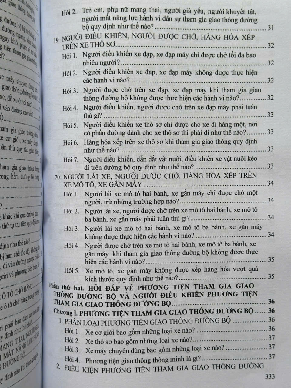 Phần thứ hai. HỎI ĐÁP VỀ PHƯƠNG TIỆN THAM GIA GIAO THÔNG ĐƯỜNG BỘ VÀ NGƯỜI ĐIỀU KHIẾN PHƯƠNG TIỆN THAM GIA GIAO THÔNG ĐƯỜNG BỘ