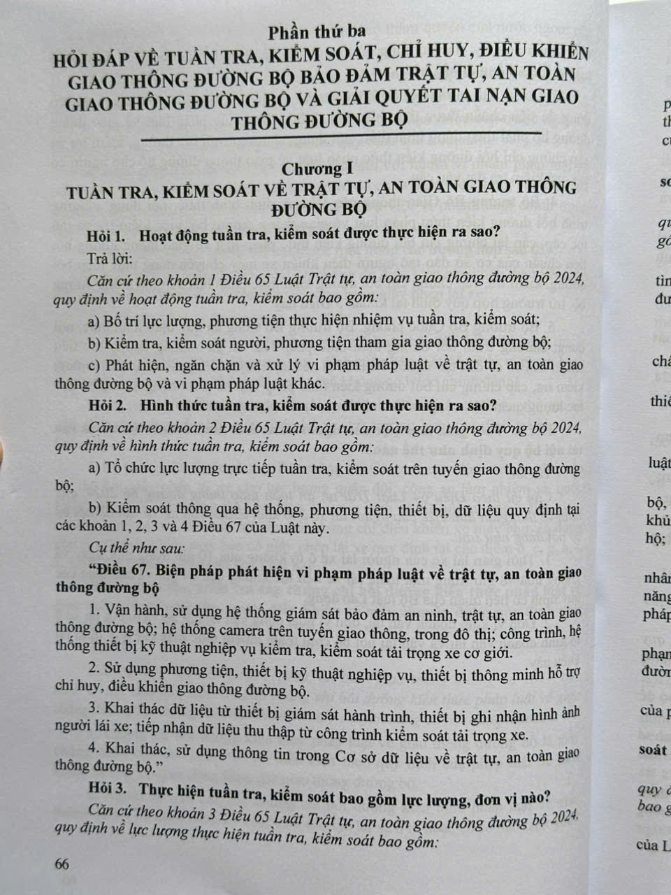 Phần thứ ba. HỎI ĐÁP VỀ TUẦN TRA, KIỂM SOÁT, CHỈ HUY, ĐIỀU KHIẾN GIAO THÔNG ĐƯỜNG BỘ BẢO ĐẢM TRẬT TỰ, AN TOÀN GIAO THÔNG ĐƯỜNG BỘ VÀ GIẢI QUYẾT TAI NẠN GIAO THÔNG ĐƯỜNG BỘ.