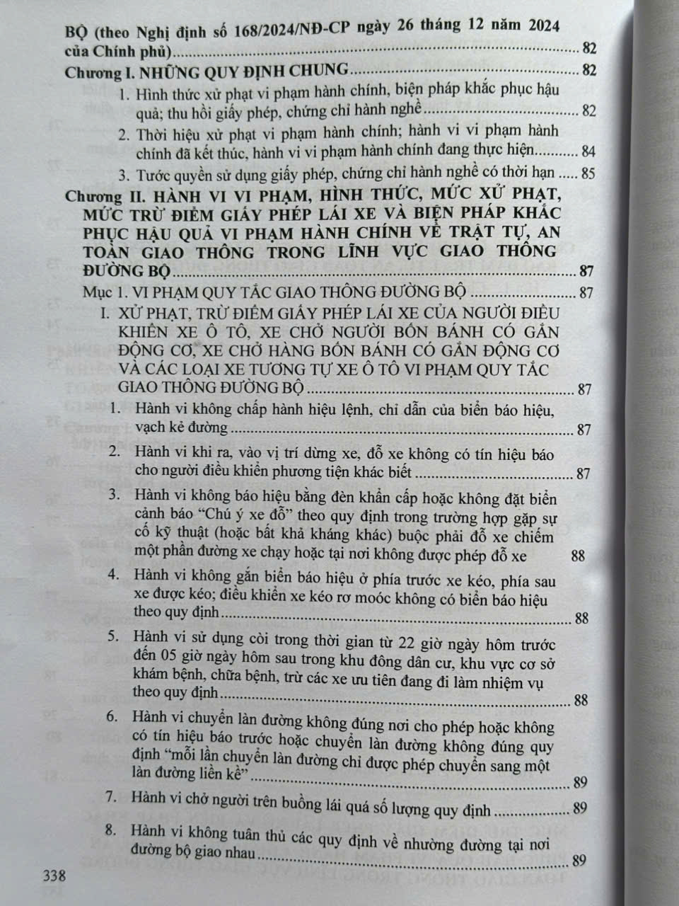Mua tại TiktokNhà sách Nam Việt – Namvietbook xin trân trọng giới thiệu cuốn sách: Xử Phạt Vi Phạm Hành Chính Về Trật Tự, An Toàn Giao Thông Trong Lĩnh Vực Giao Thông Đường Bộ – Hành vi vi phạm hành chính; mức xử phạt, biện pháp khắc phục hậu quả và mức trừ điểm giấy phép lái xe đối với từng hành vi vi phạm hành chính (Nghị định số 168/2024/NĐ-CP) Sách Xử Phạt Vi Phạm Hành Chính Về Trật Tự, An Toàn Giao Thông Trong Lĩnh Vực Giao Thông Đường Bộ – Hành vi vi phạm hành chính; mức xử phạt, biện pháp khắc phục hậu quả và mức trừ điểm giấy phép lái xe đối với từng hành vi vi phạm hành chính (Nghị định số 168/2024/NĐ-CP)