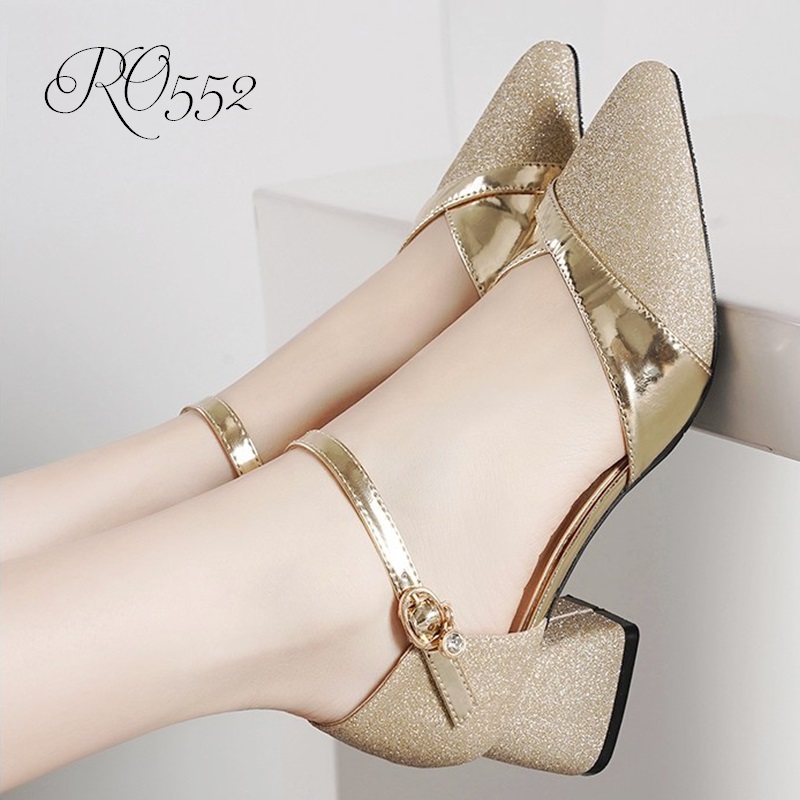 MÔ TẢ SẢN PHẨM: Sandal nữ phối kim tuyến sang trọng ROSATA RO552 cao 4p - Đồng, Bạc - HÀNG VIỆT NAM - BKSTORE Giày được làm từ chất liệu da PU cao cấp, bền