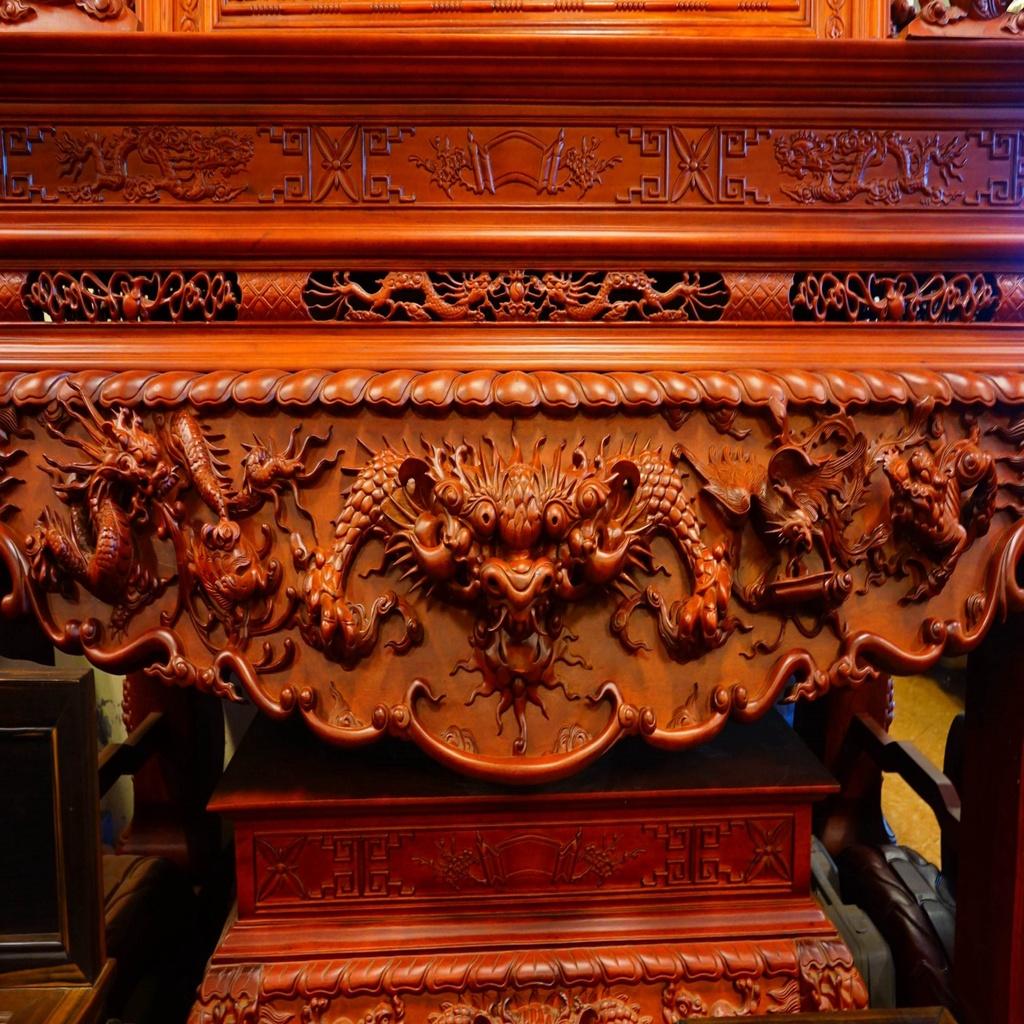 Bộ sập thờ tứ linh chân 24 gỗ hương đỏ nam phi kích thước khủng của chú Hùng ở Thanh Hoá