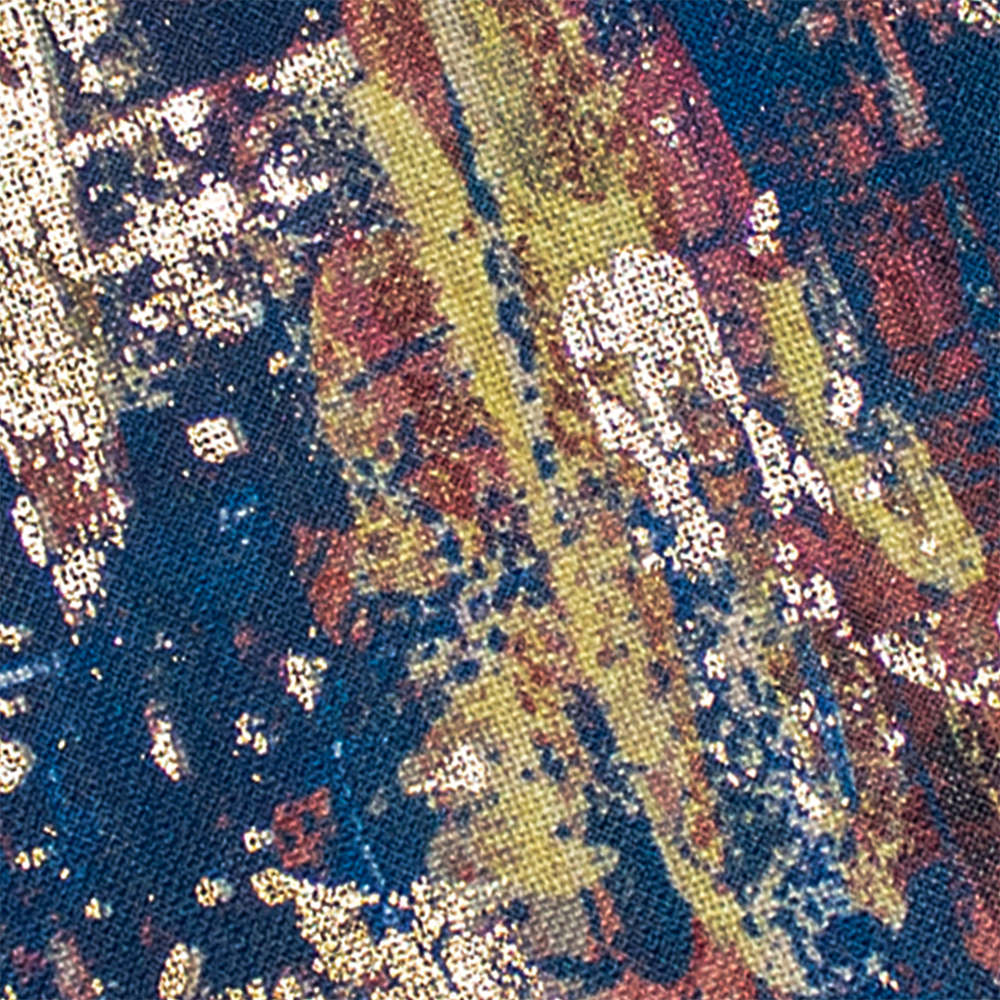 Miêu tả: Một thiết kế hình học hiện đại từ Scatter Box được in kỹ thuật số trên vải giống như vải lanh với mặt trái phối hợp bằng nhung. Kết hợp với nhiều vật phẩm