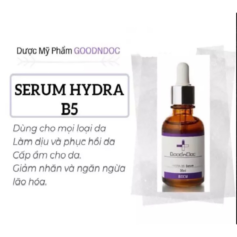 - Nano Hyaluronic Acid (Na HA). Serum cấp ẩm sáng da Goodndoc Hydra B5 Serum phù hợp với ai? Dành cho mọi loại da, đặc biệt làn da khô. Hướng dẫn sử dụng Serum cấp ẩm sáng da Goodndoc Hydra B5 Serum