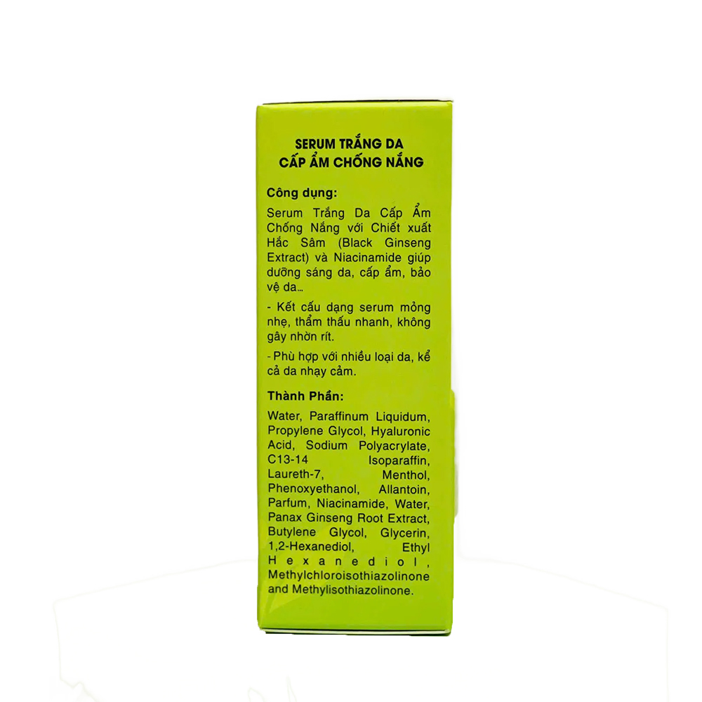 Mua tại TiktokCông dụng: Serum Trắng Da Cấp Ẩm Chống Nắng với Chiết xuất Hắc Sâm (Black Ginseng Extract) và Niacinamide giúp dưỡng sáng da, cấp ẩm, bảo vệ da…