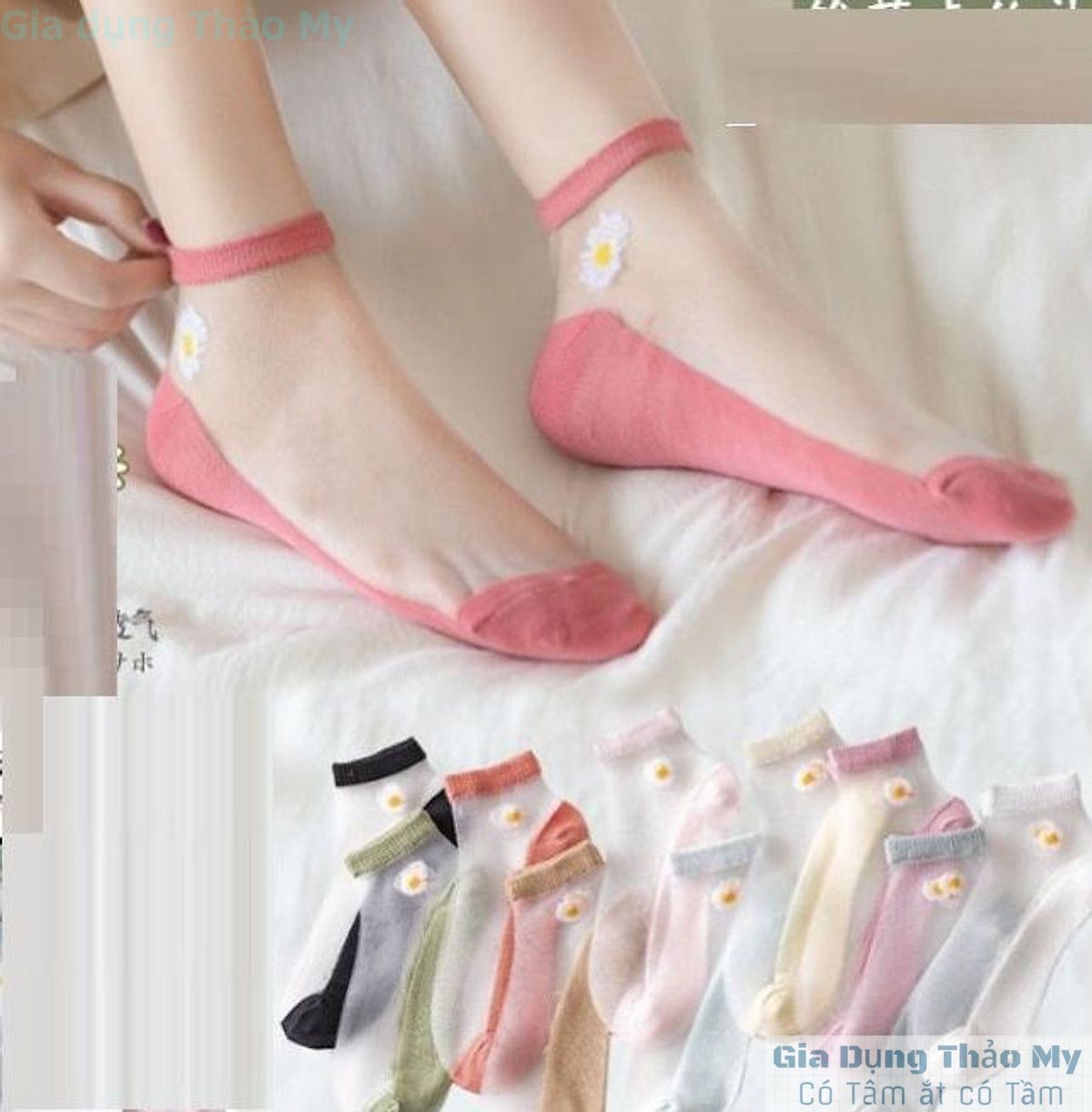 - Tất nữ cổ ngắn hoa cúc: Ngoài công dụng hấp thụ mồ hôi những đôi tất này còn giúp bạn tránh những trầy xước khó chịu cho đôi chân của mình