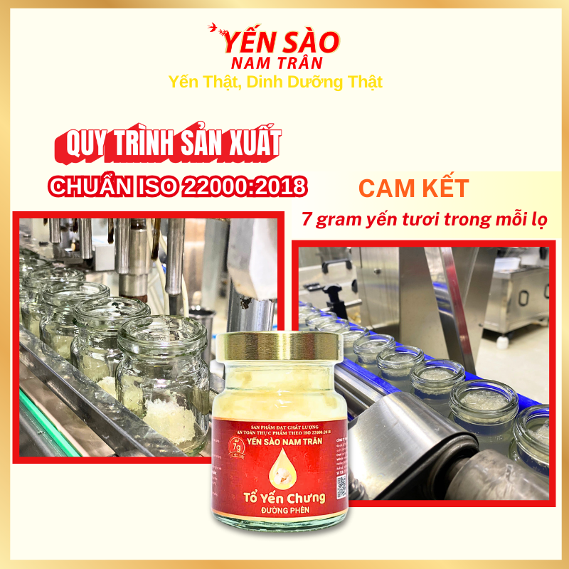 - Sản xuất theo công nghệ hiện đại đạt tiêu chuẩn ISO 22000:2018 giữ trọn dưỡng chất quý giá của tổ yến. Nhược điểm: giá thành cao so với các sản phẩm khác có hàm lượng % yến ít. Hạn sử dụng chỉ 12 tháng do KHÔNG có: