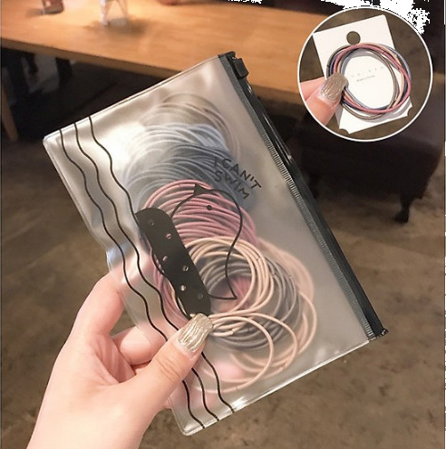 100 dây thun buộc tóc Hàn Quốc đủ màu + kèm túi zip xinh xắn