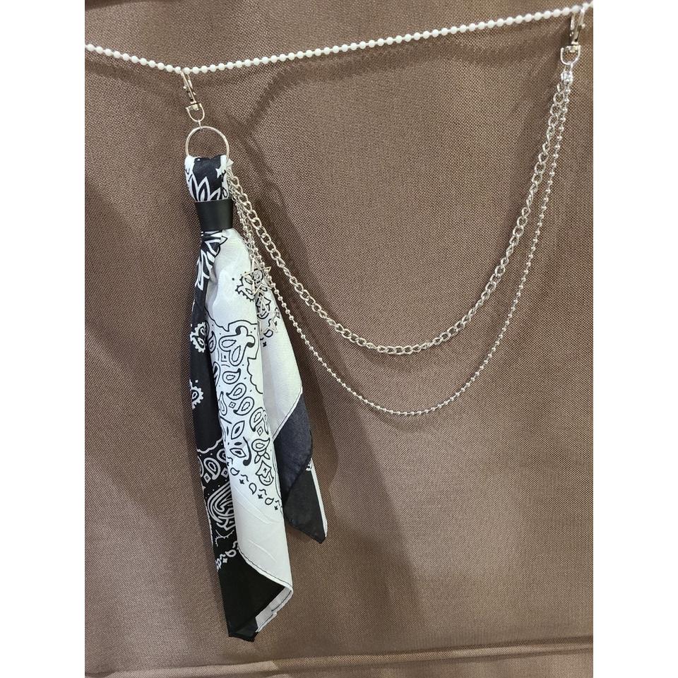 ✨Sét 3 món{Khăn+Đai+Xích Quần jeans} Khăn Bandana Streetwear - Đai da kẹp khăn - Xích Chain Quần jean