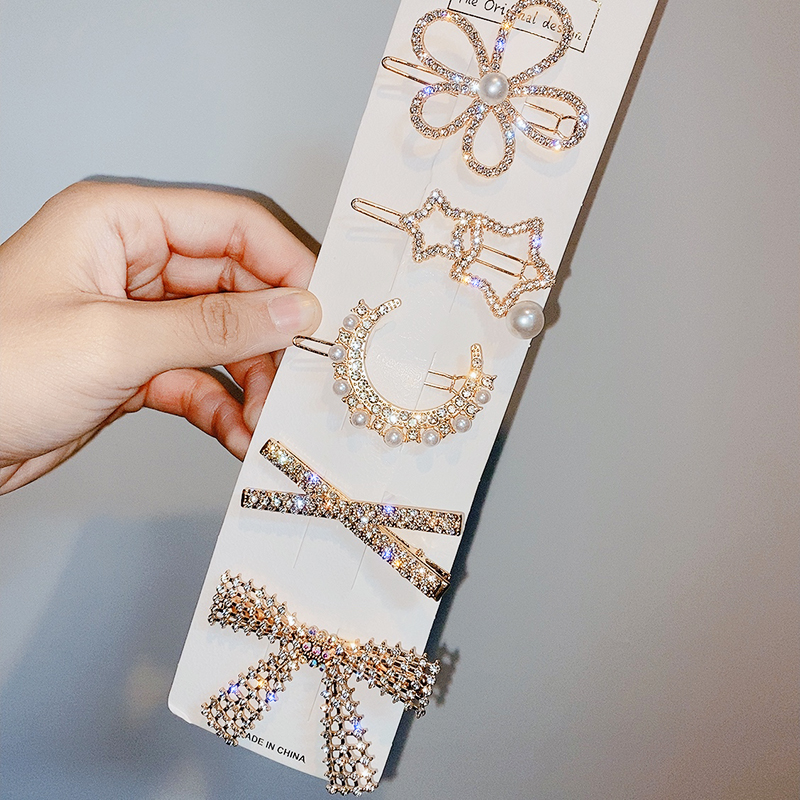 -Vĩ kẹp tóc 5-6 món cao cấp , thiết kế độc lạ , kim loại đính hạt , tạo hình tinh xảo , phụ kiện kẹp tóc cho bạn gái làm đẹp mỗi ngày -Xuất