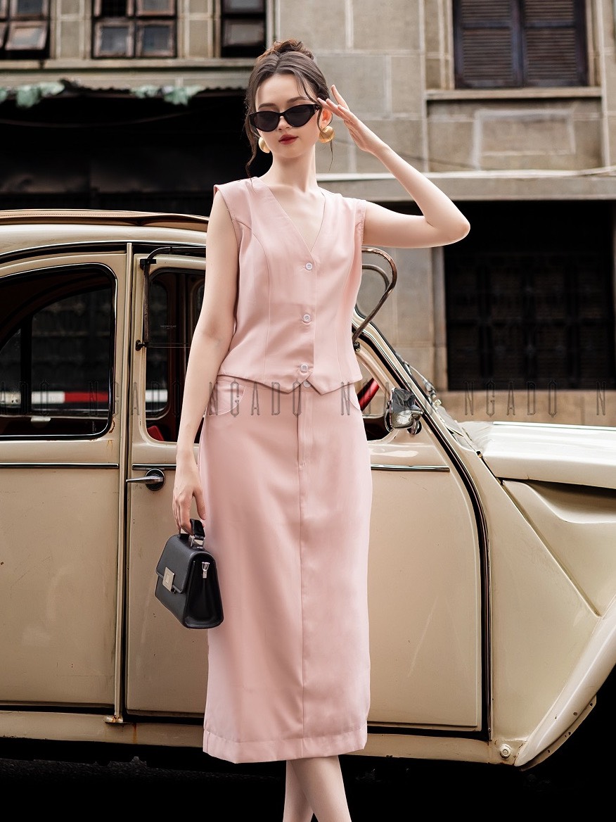 Tinh giản mà sang trọng với bản phối áo gile cùng Chân váy lụa hiện đại #hagoo #phoidodep #fashion