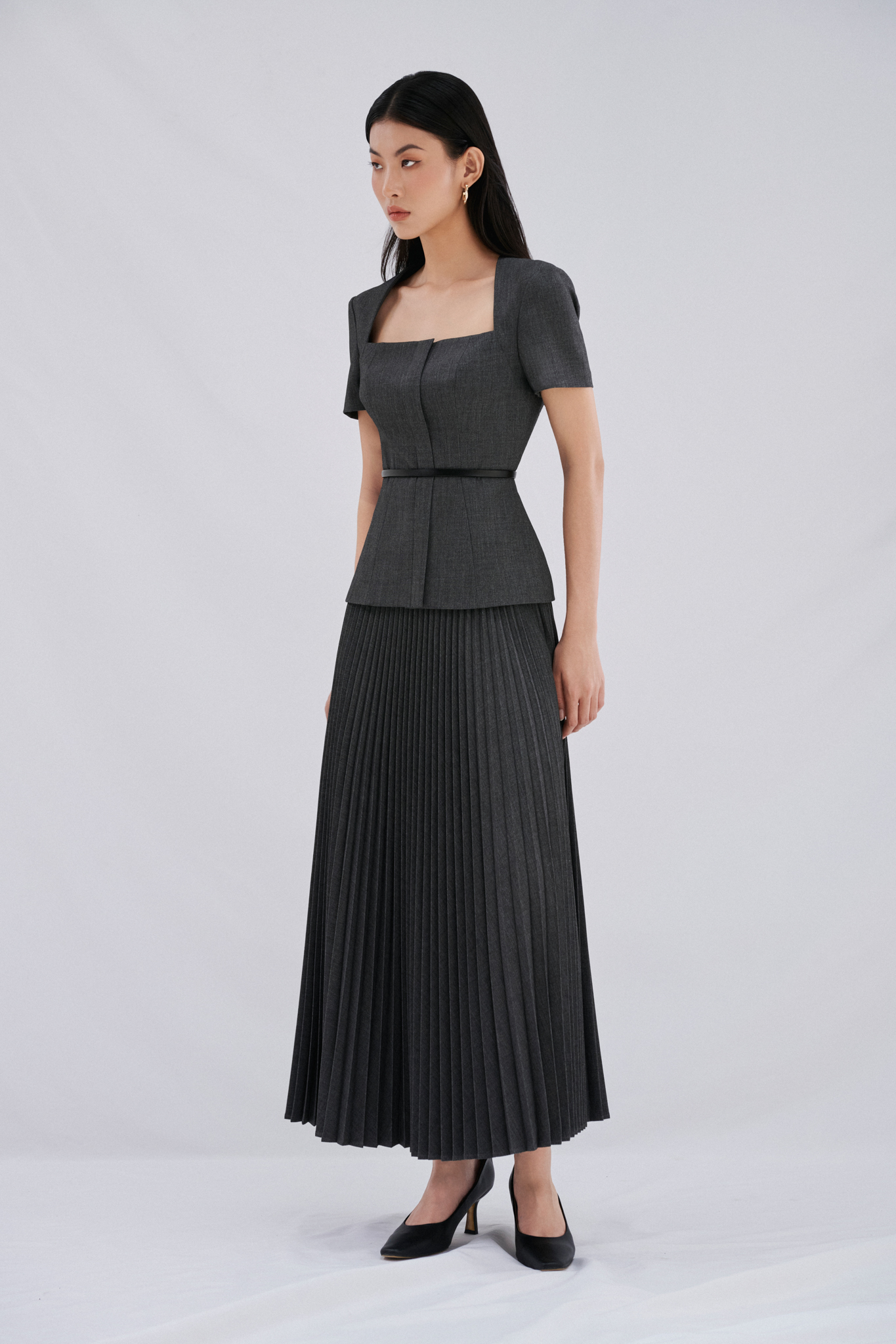 - Thông tin sản phẩm Daria Set với áo cổ vuông thiết kế phần cúp ngực cách điệu tạo nên nét quyến rũ đầy sức hút. Áo kiểu tay ngắn, cổ hình thang, hàng dây kéo ẩn sau lớp nẹp thân trước. Chân váy xếp ly được thiết kế tỉ mỉ, chỉn chu tới từng đường nét. Daria Top và Daria Skirt không chỉ là bộ trang phục mang đậm vẻ đẹp trung tính, mà thiết kế này còn làm trái tim các Quý cô xao xuyến bởi sự sang trọng và thanh lịch.