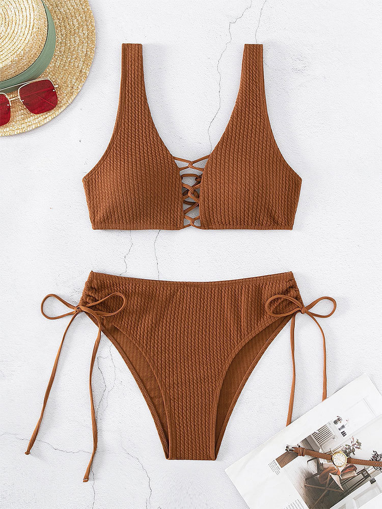 ✨Sét bikini 2 mảnh quây cúp ngực khoen tròn màu trơn khoét eo đi biển sexy