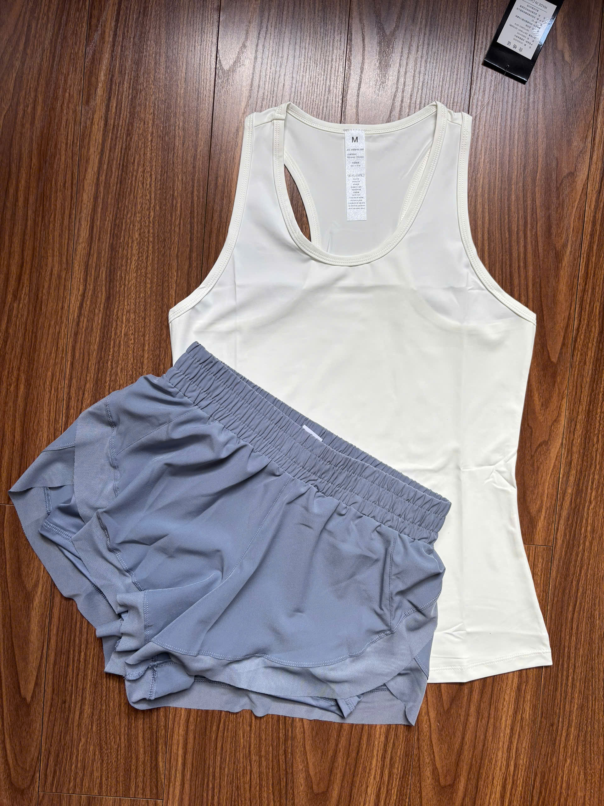 Đây là set shop tự kết hợp quần đùi và áo.ba lỗ - Quần đùi hàng quảng châu cao cấp Quần có 2 lớp: lớp ngoài là vải polyester, bên trong là lớp thun lạnh co giãn 4 chiều có túi bên hông đựng đồ lặt vặt Quần lưng cao giúp chị em hack vòng 2 cực đỉnh, lên dáng siêu đẹp Quần có 3 màu: Đen, Xanh navy, Xám - Áo ba lỗ nữ khoét lưng Vải Sợi polyester mát rượi, co giãn 4 chiều, thấm hút mồ hôi cực tốt Áo có thể dùng mặc ở nhà, đi chơi, đi tập các môn thể thao Màu sắc tươi tắn, thời trang Phù hợp cho mọi lứa tuổi 6 tông màu tôn da, thời thượng, thiết kế đơn giản, form đẹp tôn dáng thoải mái mix đồ đi tập gym – yoga. Co giãn 4 chiều, thấm hút nhanh, mau khô, khử mùi cơ thể, độ bền cao, không nhão vải. Phù hợp với nhiều hoạt động, đi chơi, đi làm, đi tập. Size: M, L, XL