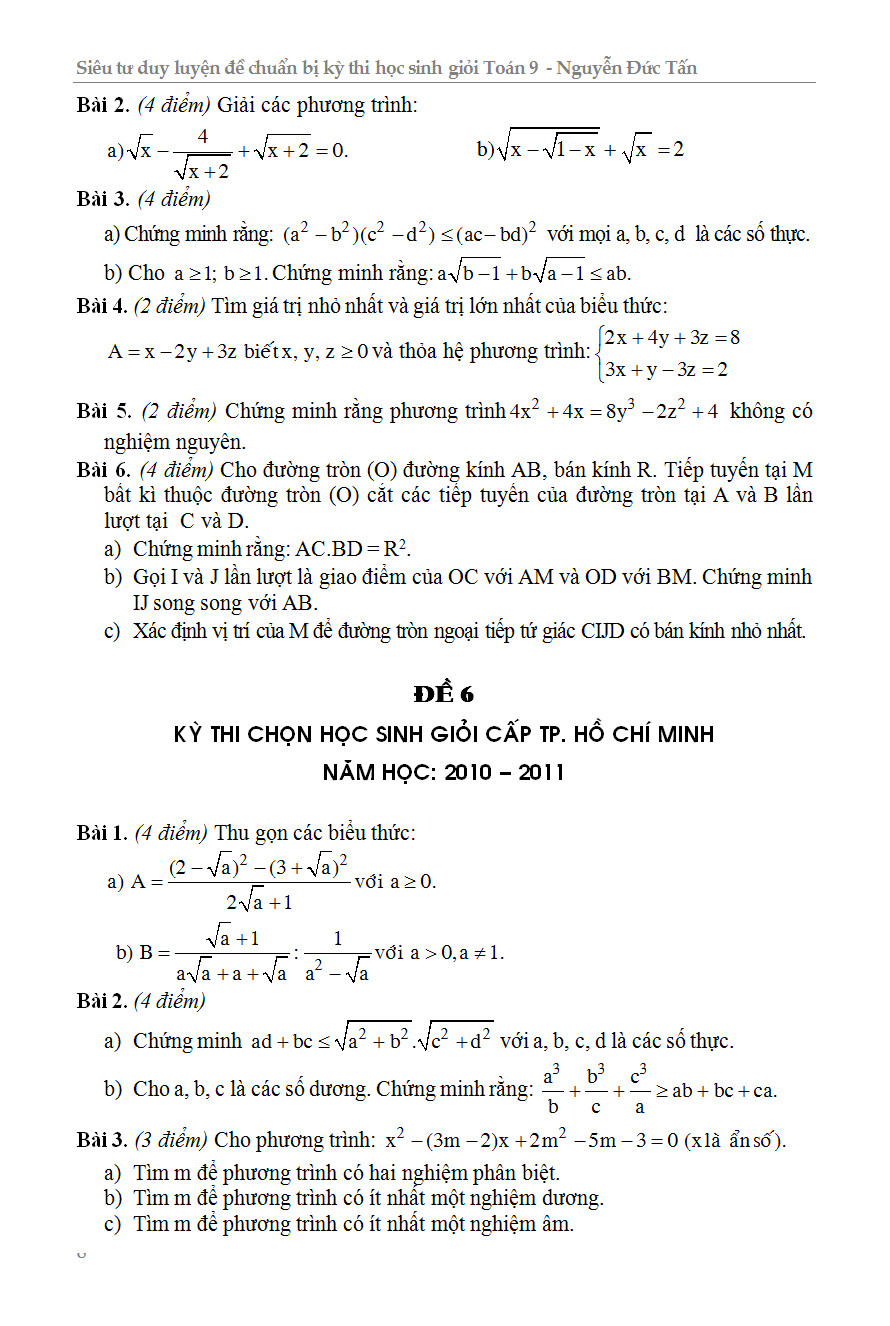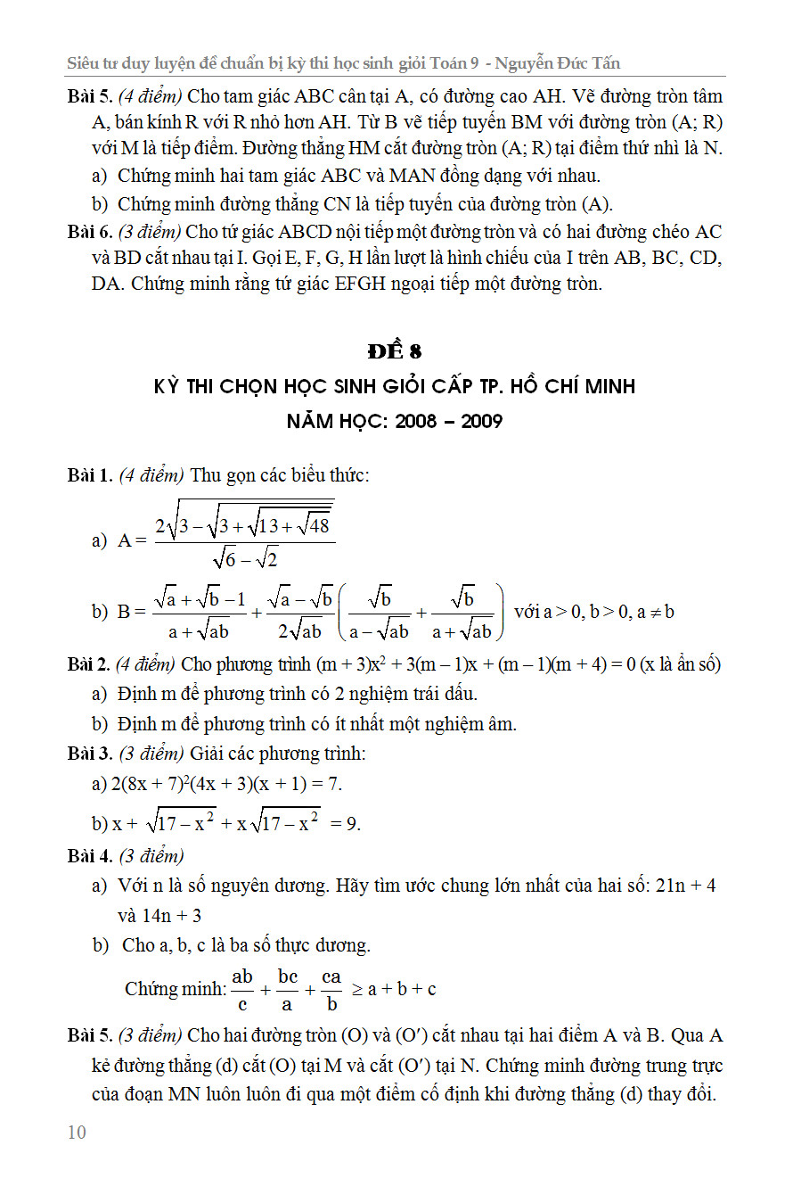 ✨Siêu Tư Duy Luyện Đề Chuẩn Bị Kỳ Thi Học Sinh Giỏi Toán 9 - KV