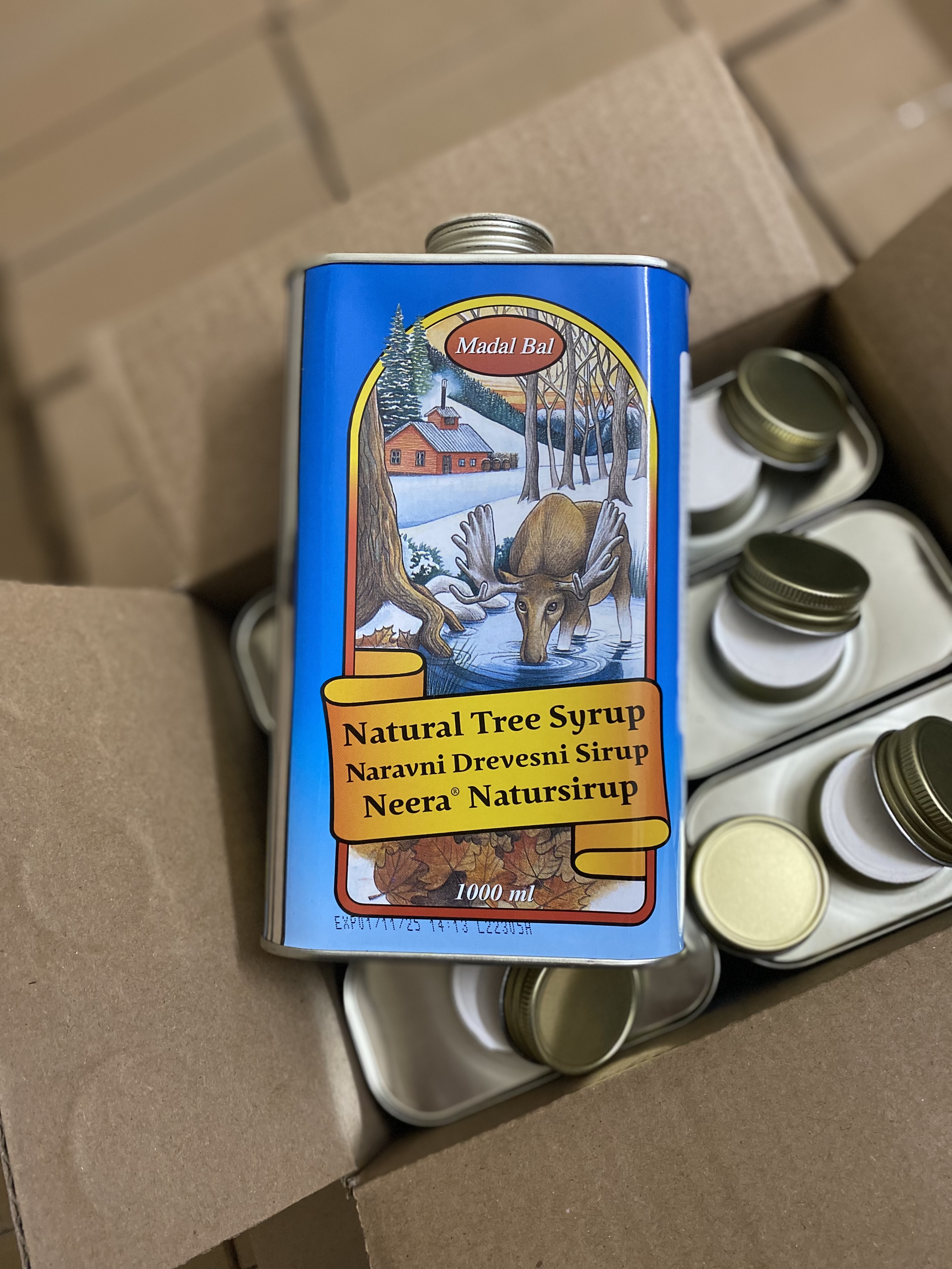 Mỗi lon tặng kèm cốc đong, bột ớt, bột gừng Là Siro của thương hiệu Madal Bal Neera với tên dòng sản phẩm là Natural Tree Syrup. Hạn sử dụng: Hàng mới Thể tích: 1000ml